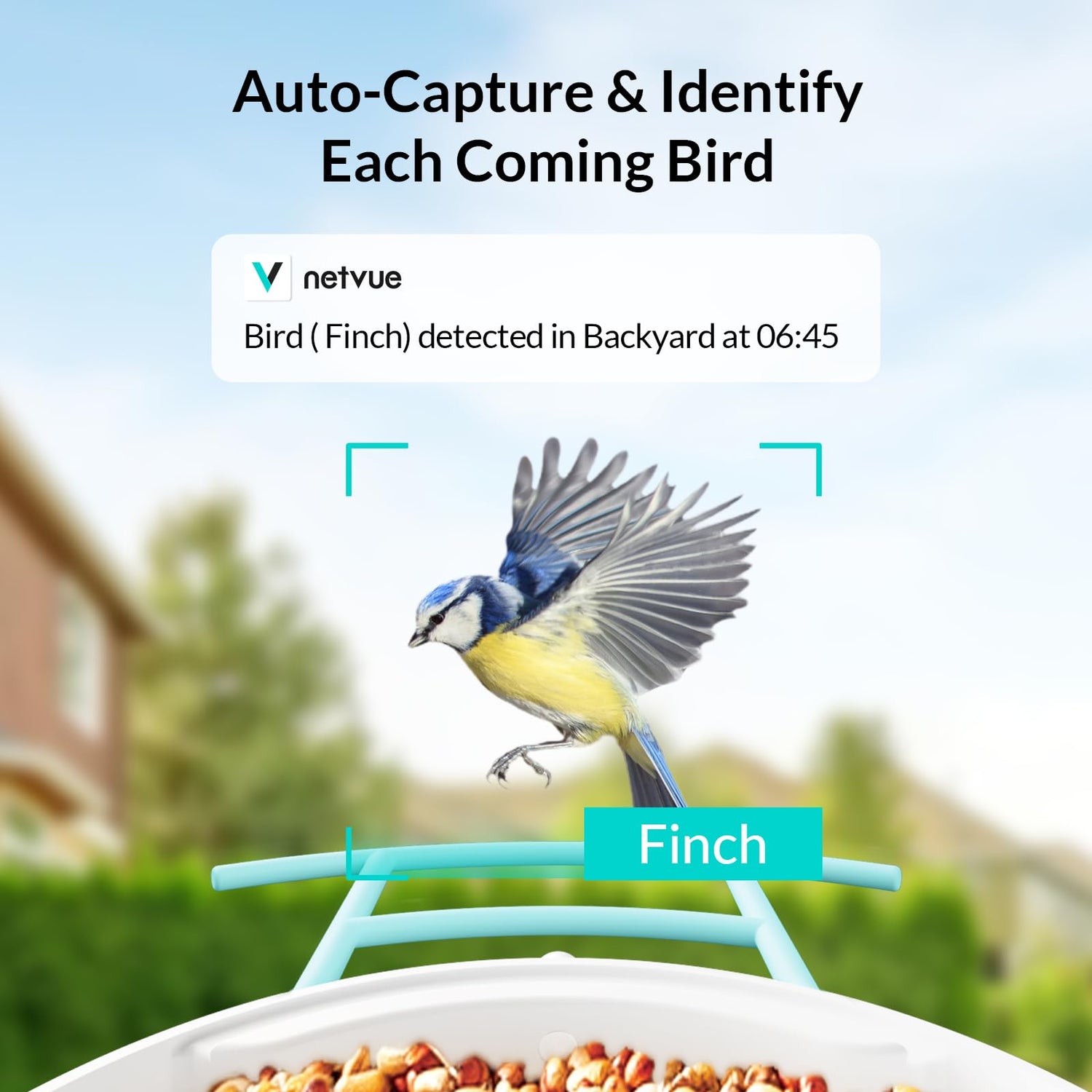 - 【Watch Birds On Your Phone Anywhere, Anytime】- NETVUE smart bird feeder with camera can auto capture & Identify all coming birds, and you will receive real-time notifications of feather visitors via the phone app. This revolutionary smart bird detective camera allows you to close up shoots full of character and provides the best experience to upgrade your birdwatching journey. You will never miss out feather friends!
