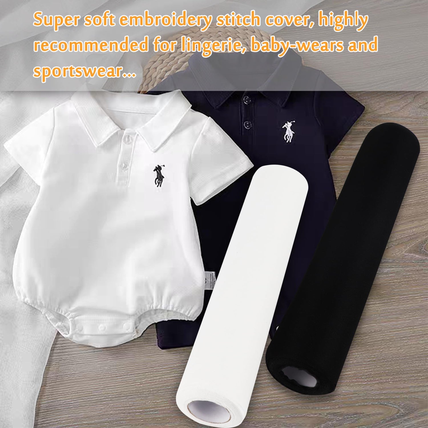 - ▶ Tender, Sheer, Almost Invisible: New brothread embroidery stitch cover up backing will stay permanently on your fabric. It is tender, sheer and almost invisible through clothing, highly recommended for lingerie, baby-wears and sportswear, or anywhere to avoid a scratchy irritant of thread to the skin.