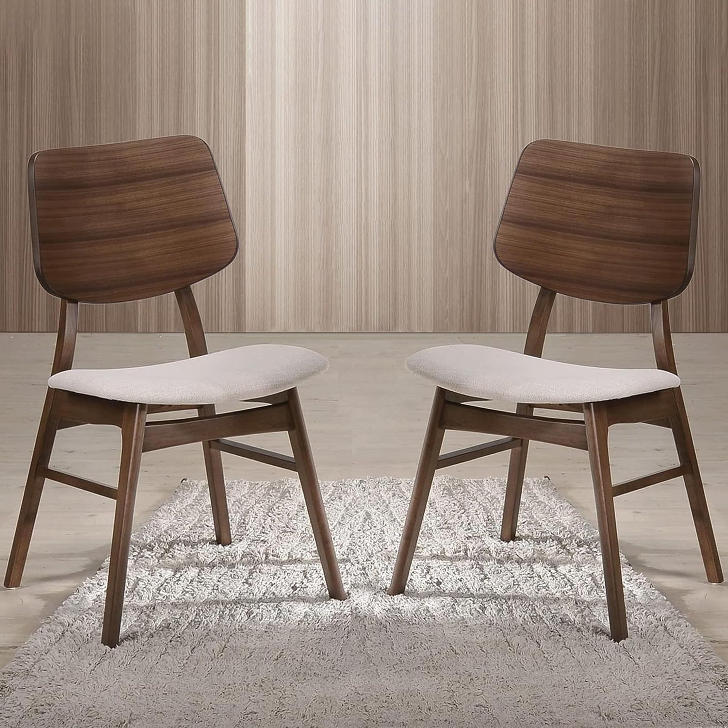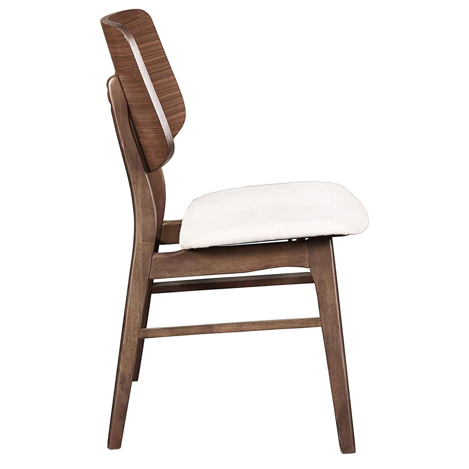 Details: The Mid-Century Modern style of New Classic Furniture’s Oscar Dining Room Collection adds the perfect sophisticated touch to your home, loft, apartment, small space or dorm room. Choose from two dining table sizes: The 60” Rectangular Dining Table that seats 4-6 people, and the small space friendly 31.25” x 35.25” Corner Dining table with its unique triangular shape. . Wrapped in a rich natural walnut brown finish that enhances the beautiful grain of this wood dining set, the Oscar combines solid wood and walnut veneers to achieve its contemporary style. The matching Oscar Dining Chairs are comfortable, with 100% polyester cushions in a natural beige fabric and a curved, supportive wood back. Oscar Dining Room Furniture is easy to assemble, features sturdy and stable construction, with that Mid-Century Modern vibe that gives a classic appeal to your dining space.