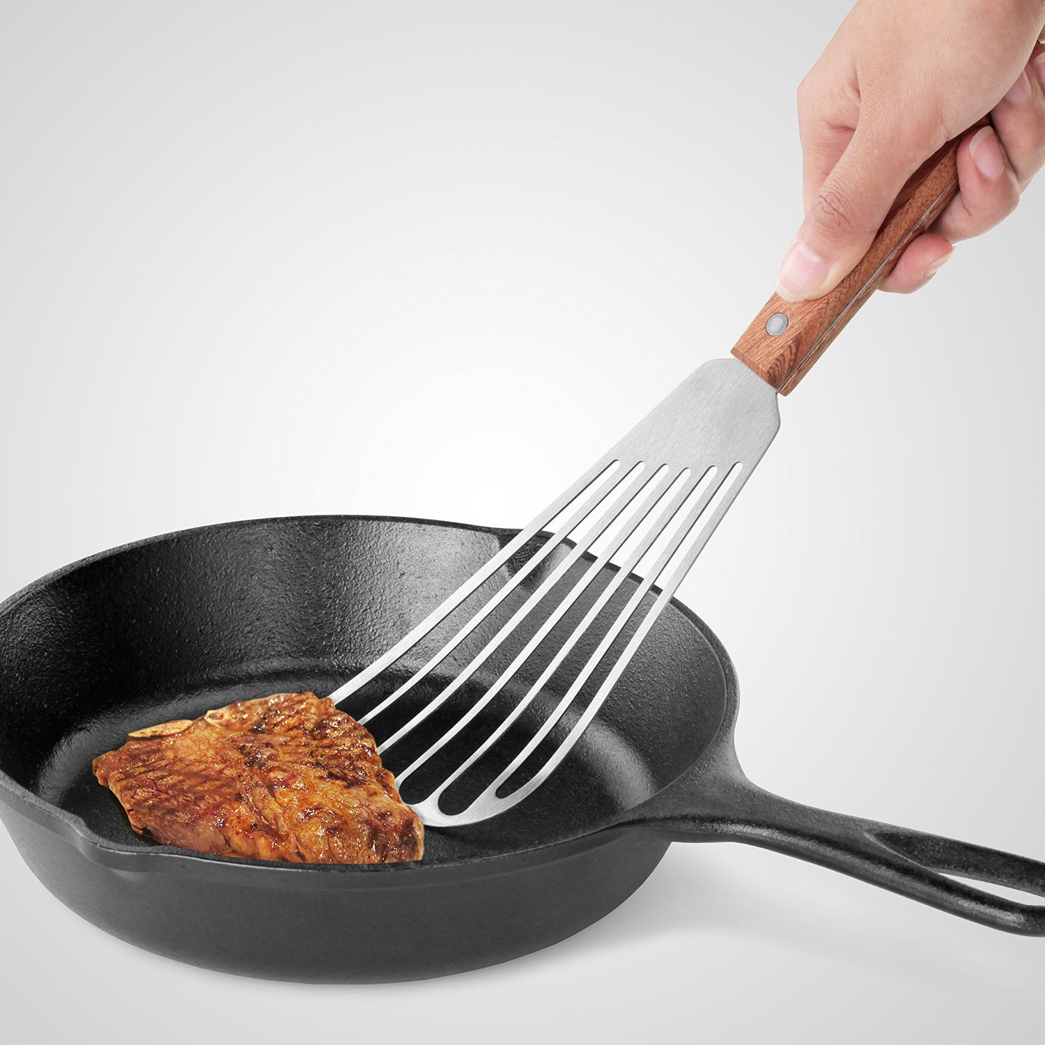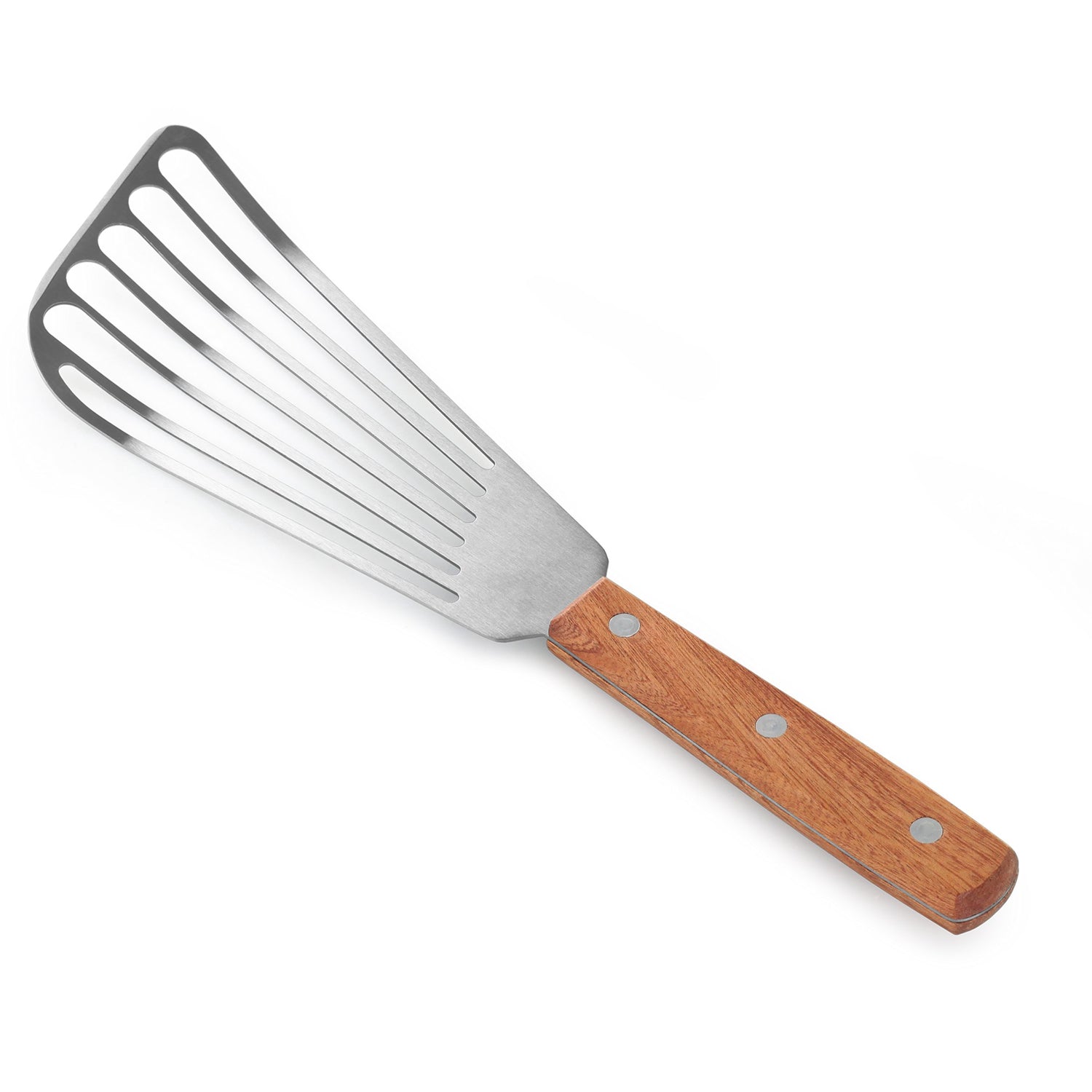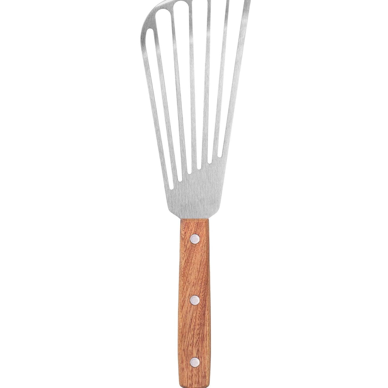 New Star Foodservice 43068 Wood Handle Fish Spatula, 6.5" Blade, Silver