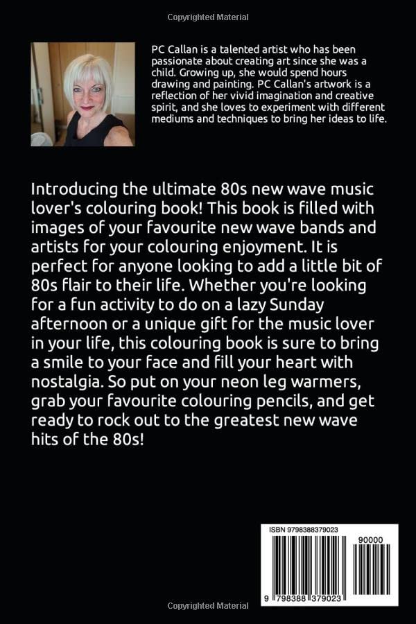 Details: Introducing the ultimate 80s new wave music lover's colouring book! This 30-page book is filled with images of your favourite new wave bands and artists for your colouring enjoyment. This book is perfect for anyone looking to add a little bit of 80s flair to their life. Whether you're looking for a fun activity to do on a lazy Sunday afternoon or a unique gift for the music lover in your life, this colouring book is sure to bring a smile to your face and fill your heart with nostalgia. So put on your neon leg warmers, grab your favourite colouring pencils, and get ready to rock out to the greatest new wave hits of the 80s!