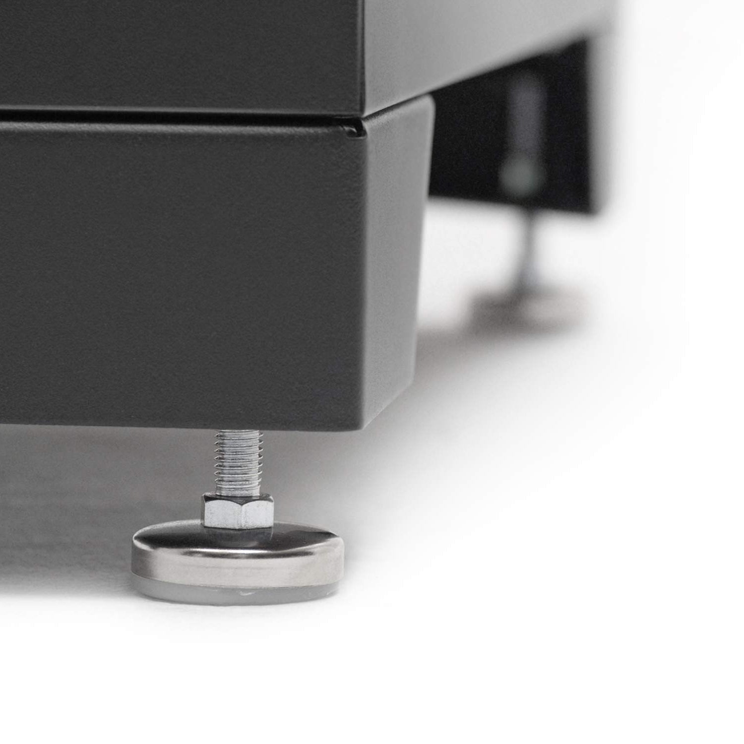 - Height-adjustable steel shelves accommodate different sized items
