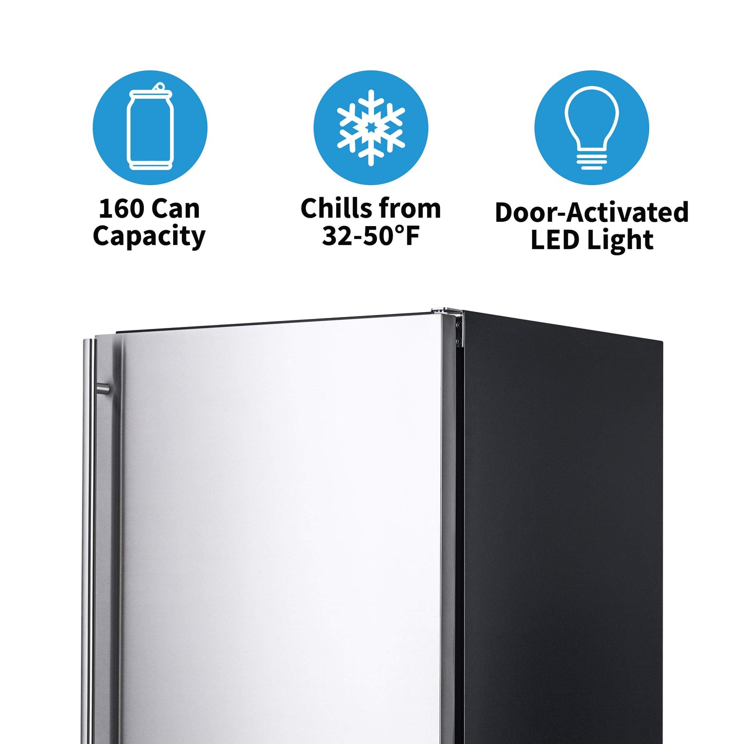NewAir 24" Built-in 160 Can Outdoor Beverage Fridge in Weatherproof Stainless Steel with Auto-Closing Door and Easy Glide Casters. New Air Mini Fridge, Built-In or Freestanding Outdoor Fridge
