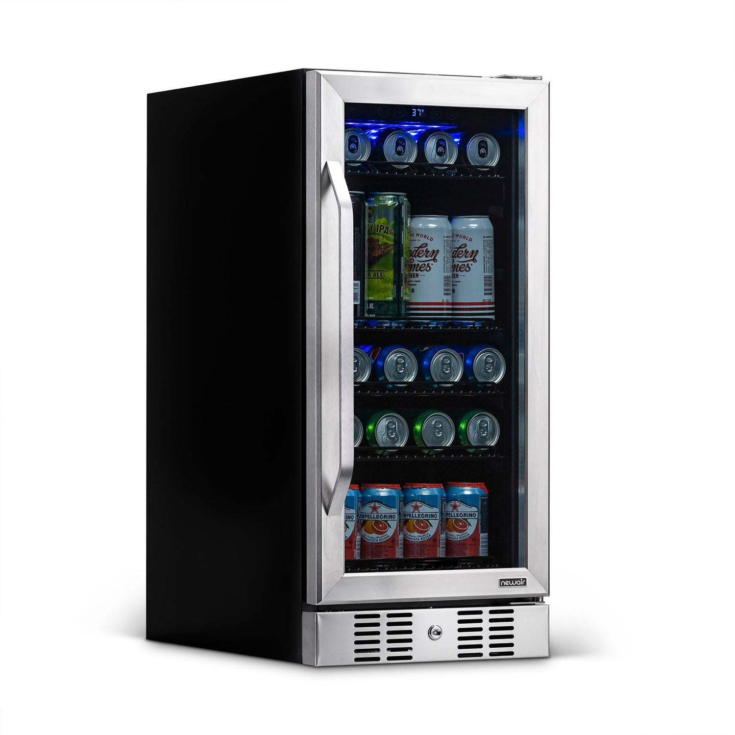 Details: The Newair 15" Built-In 96 Can Beverage Fridge slides easily between standard base cabinets in your kitchen. It can also stand alone anywhere you like. This single-zone fridge features precision temperature controls that let you chill 96 standard cans all the way down to 37 degrees for icy refreshment.