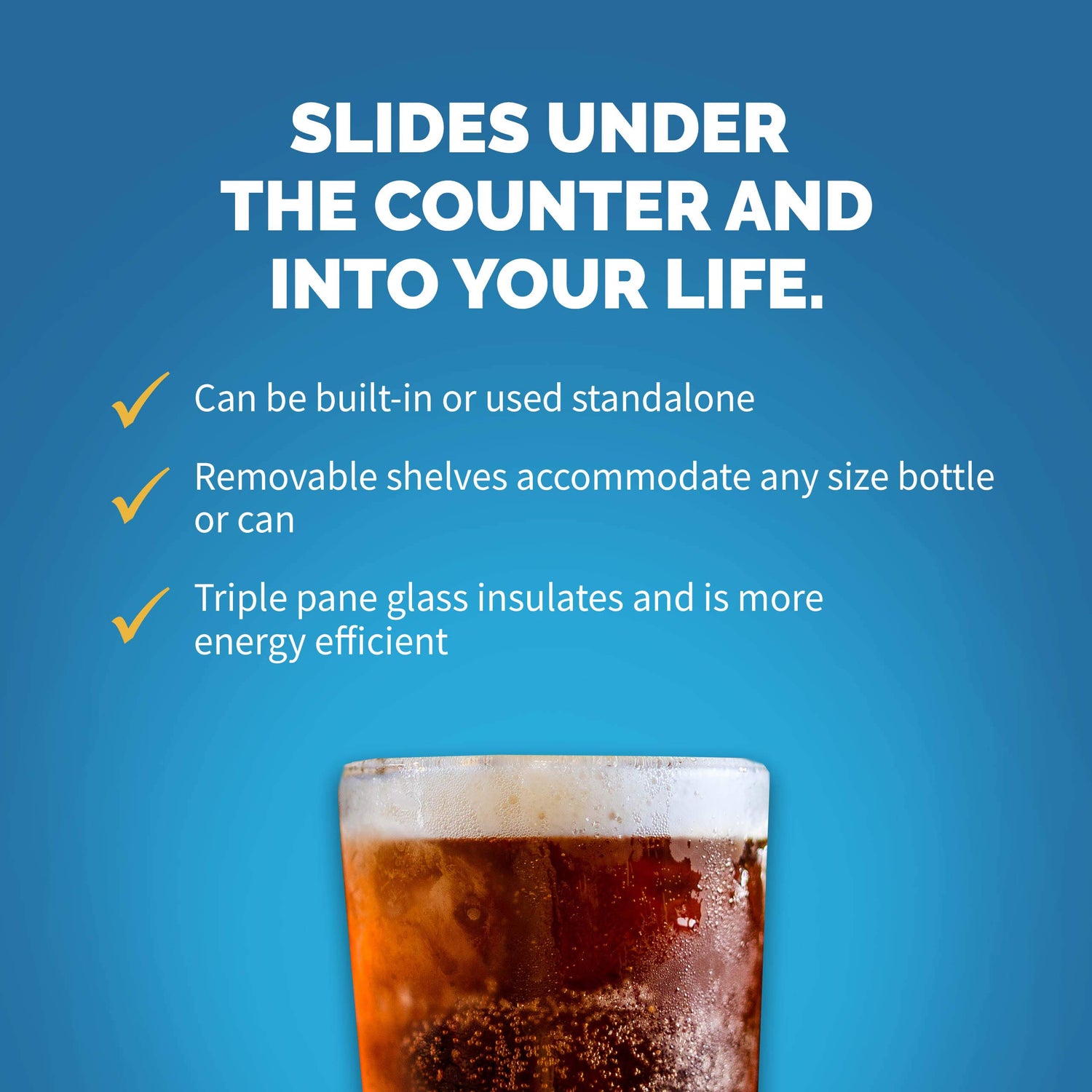The quiet, front-venting compressor system allows this roomy beverage fridge to fit easily under standard kitchen counters. Just slide it into place for a sleek, integrated look that blends perfectly with your cabinetry - or let it stand alone. The choice is yours.
