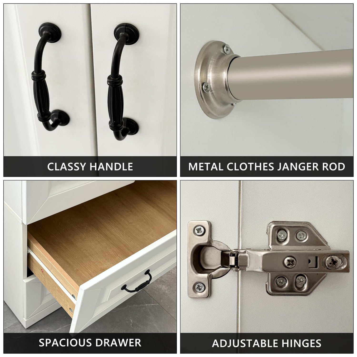- Ample storage space: The wardrobe has a hanging area and a drawer area. The height of the wardrobe hanging area is 49 inches, which can effectively prevent clothes from wrinkling. The wardrobe drawer area can store a variety of clothes, bedding or sheets, and quilts according to the size of the partition space, greatly improving space utilization