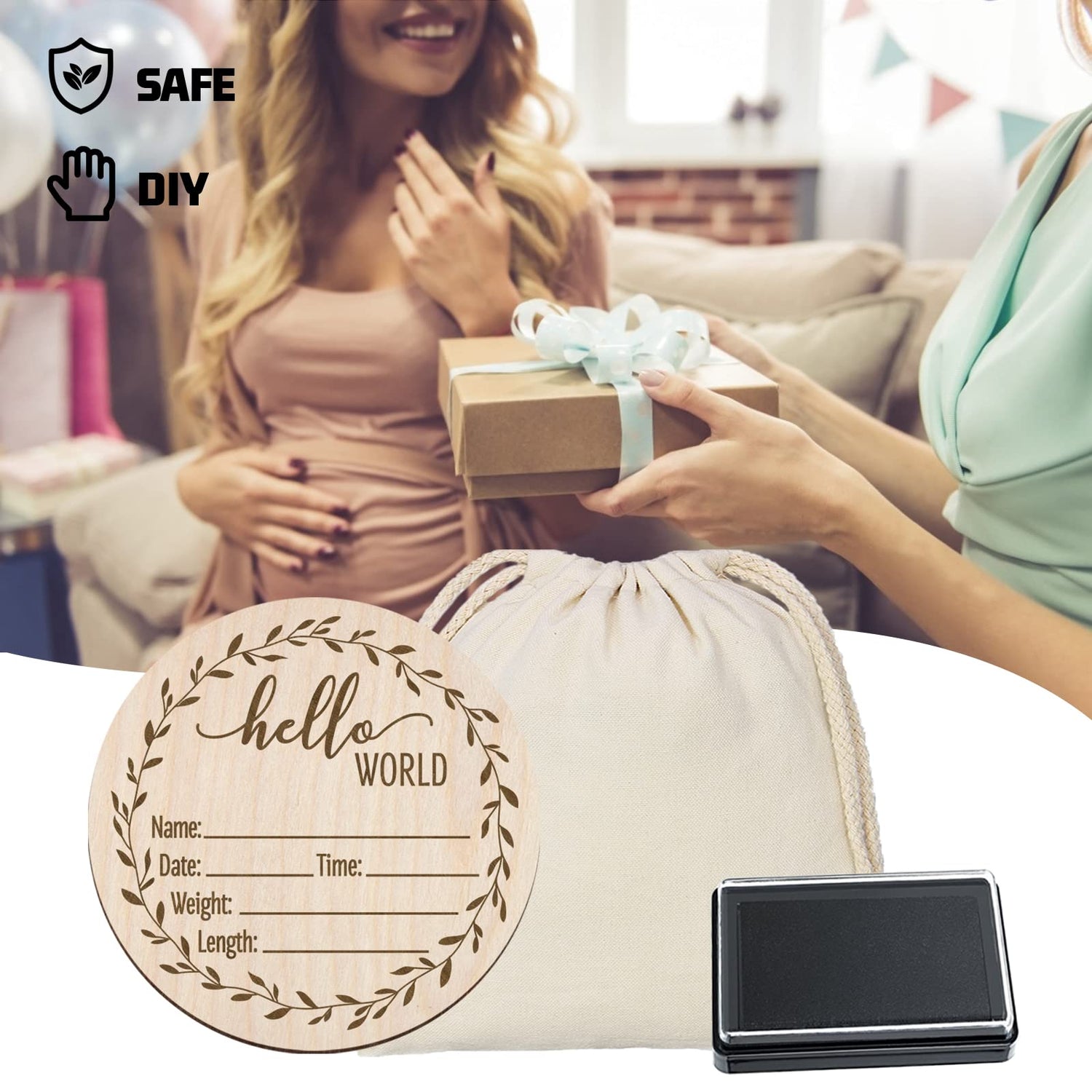 - Creative design-Our wooden baby birth announcements are laser engraved, record your baby's first handprint or footprint on the front, and write your baby's birth brush statistics on the wood using any ordinary black or fine dot pen on the back, record your baby's name, birth Date, time of birth, birth weight, birth length to make it unique and meaningful. Hope your baby thrives in a loving environment.
