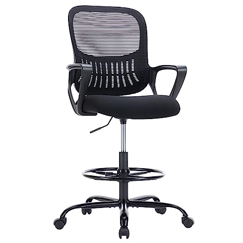 NEWBULIG Drafting Chair - Counter Height Adjustable Tall Office Desk Chair with Fixed Armrests and Comfortable Lumbar Support for Standing Desk, Deep Black