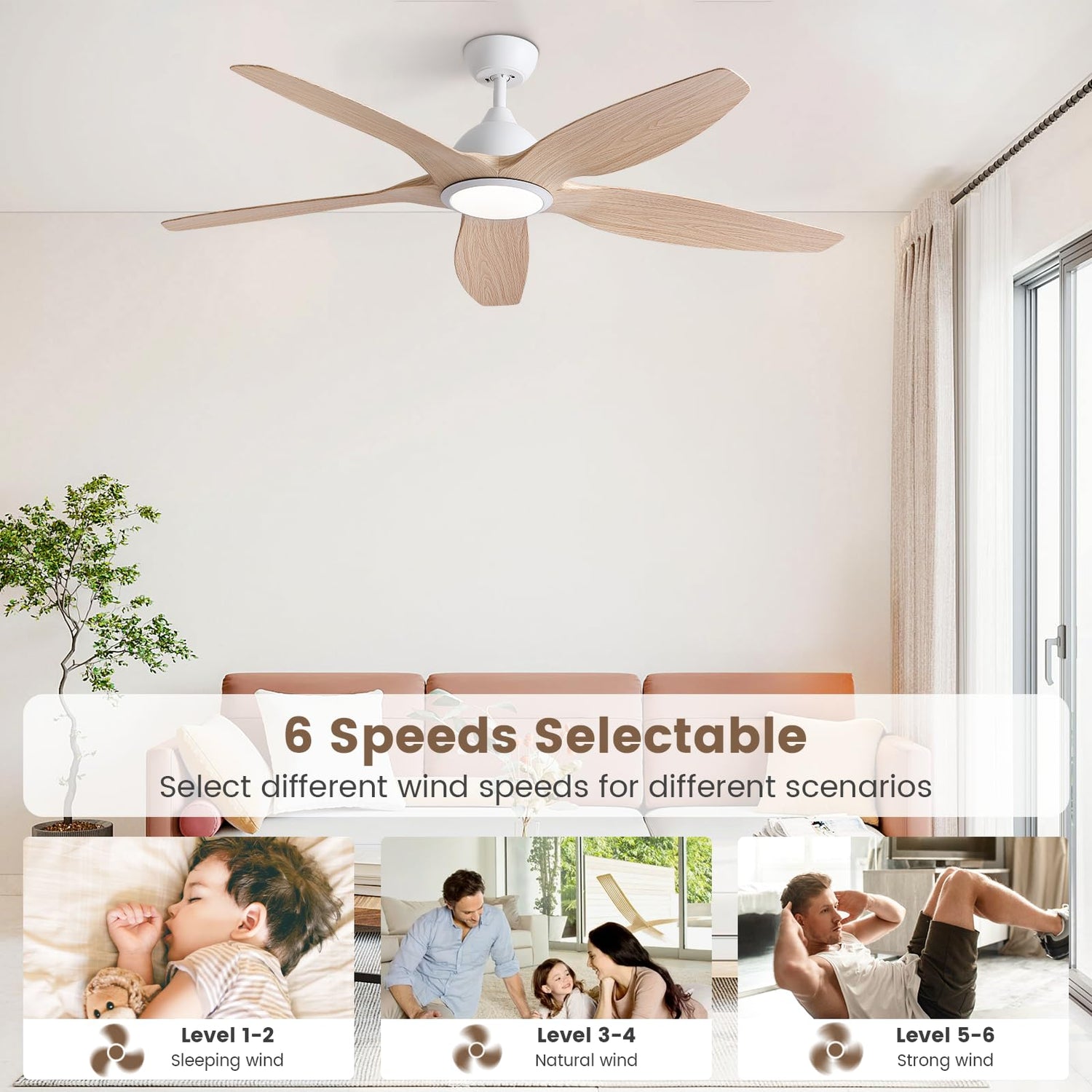 Newdayr 60" Wood Ceiling Fan with Lights Remote and Control, 6 Speeds, 3 Color Tones Dimmable LED, 6H Timer, Modern, Noiseless Reversible DC Motor, Large Indoor, Kitchen, Bedroom, Living Room