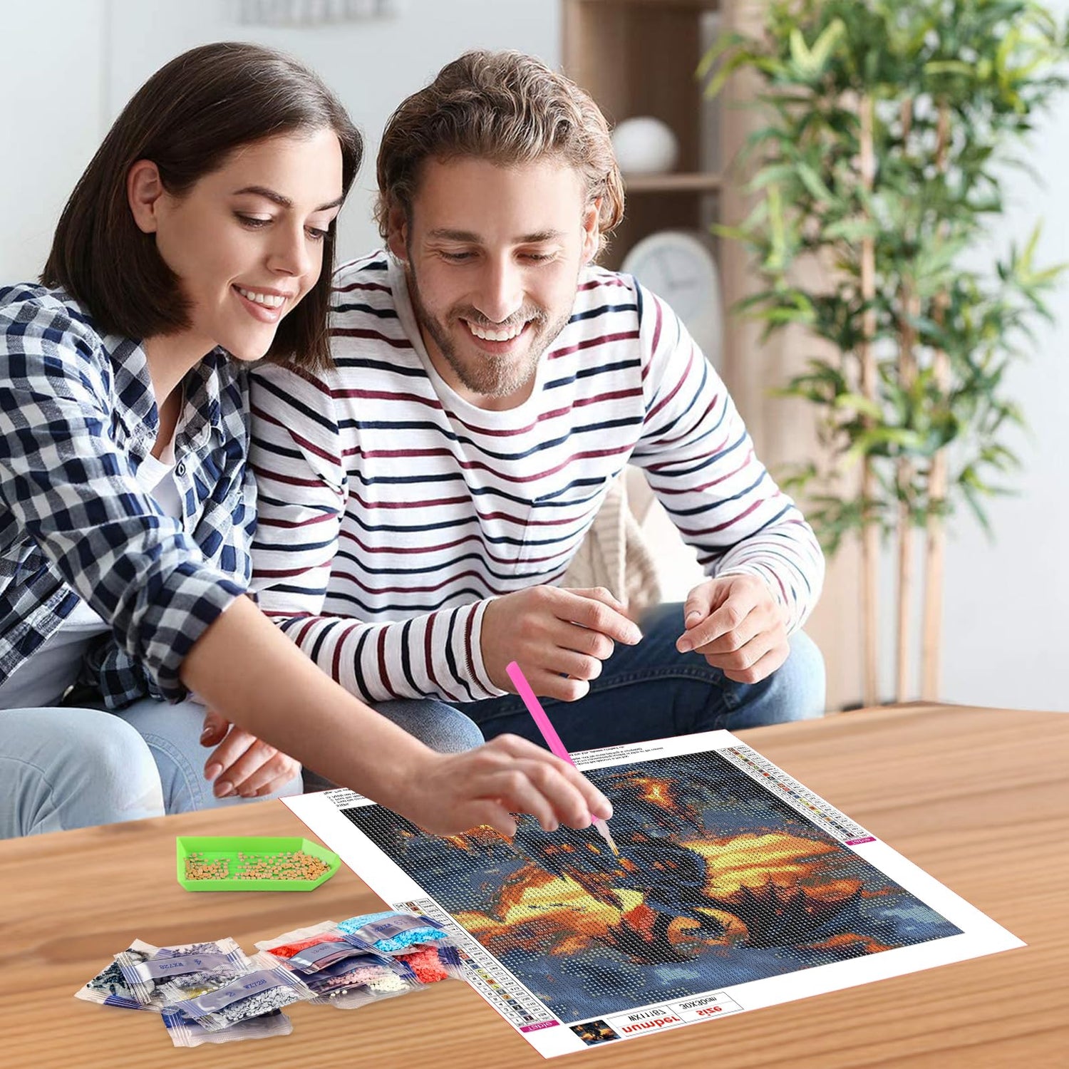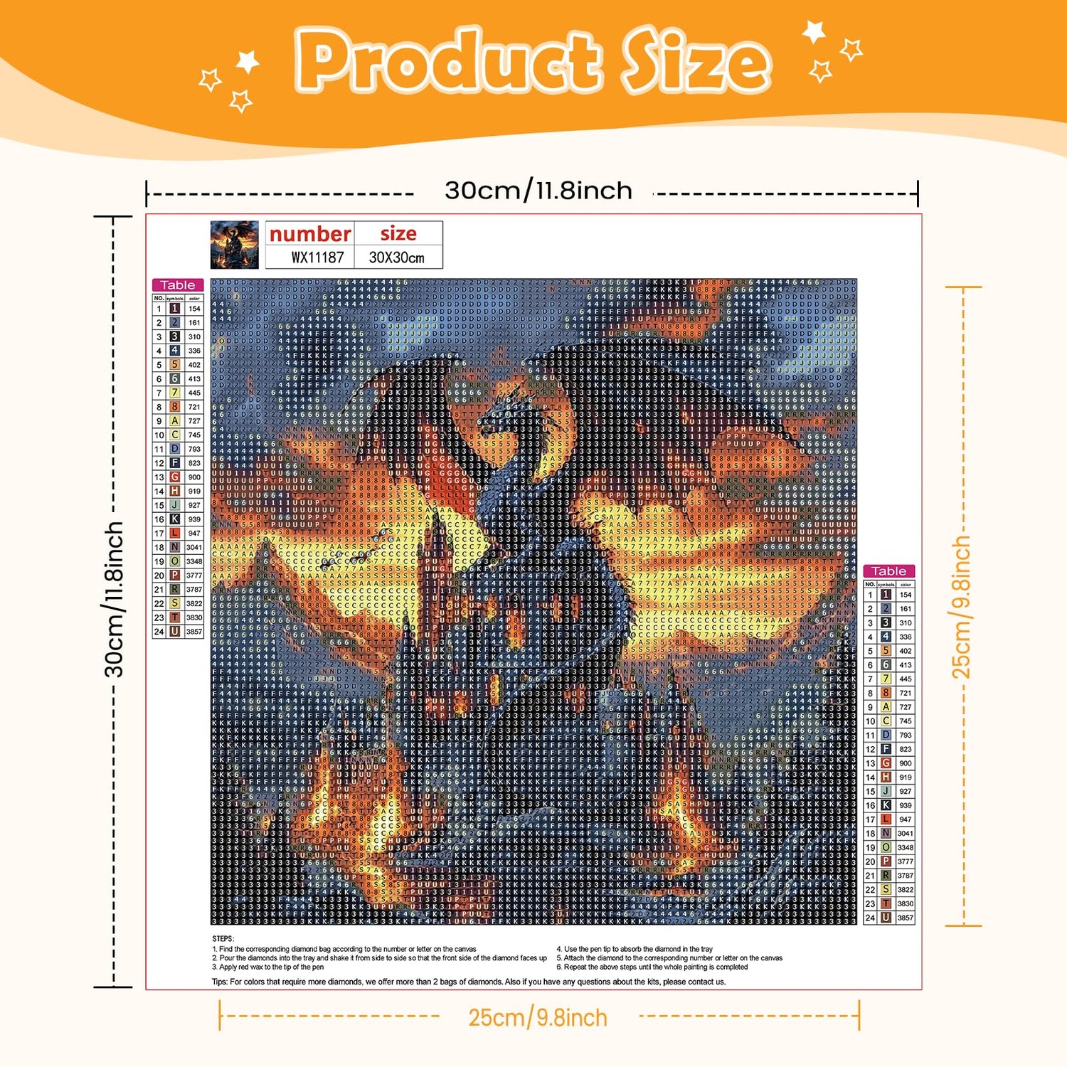 NEWENMO Castles Diamonds Painting Kits for Adults Beginner DIY 5D Dragon Diamond Art Paint with Round Diamonds, Full Drill Gem Art Animal Diamonds Painting for Craft Home Wall Decor 12x12 in