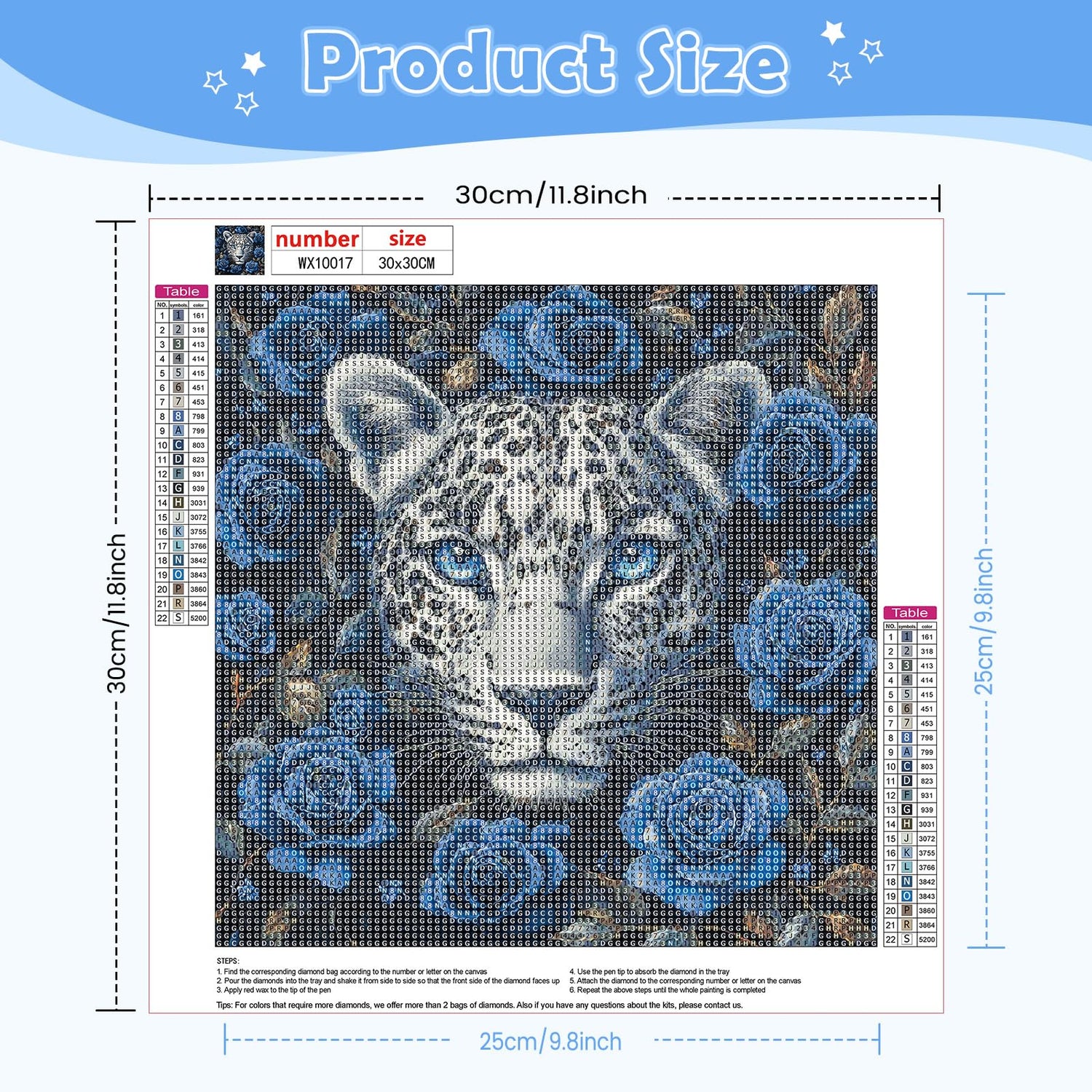 - 30% More Diamonds: No need to worry about running out! Each color comes with 30% more diamonds than needed. The kit includes all the tools you need to complete your diamond art with ease
