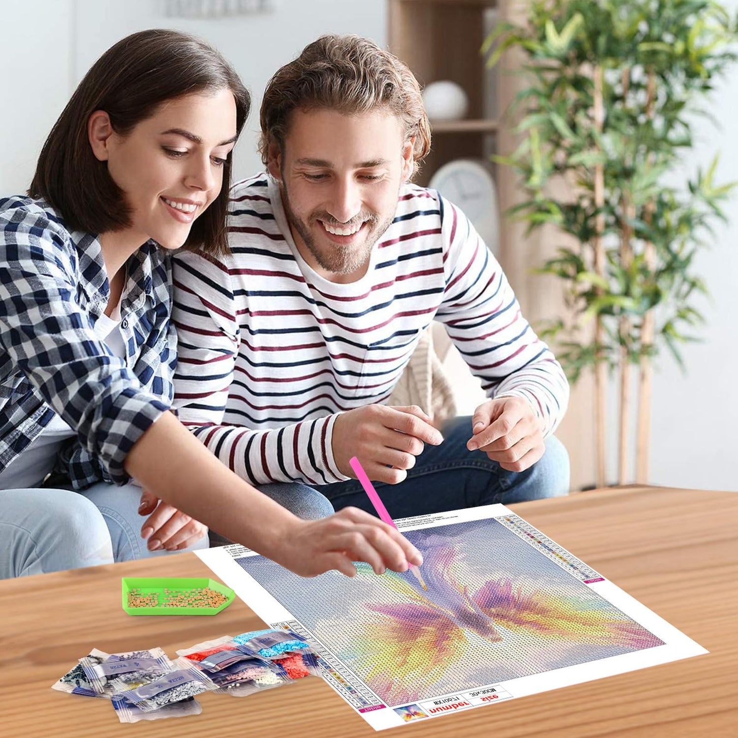 - 5D Diamond Art Kits for Adults: Complete Set Included! Includes 1 HD canvas, 2 diamond pens, 1 tray, 1 wax pad, 1 soft pen grip, 5 resealable bags, and colorful diamonds—everything you need to start your diamond painting right away