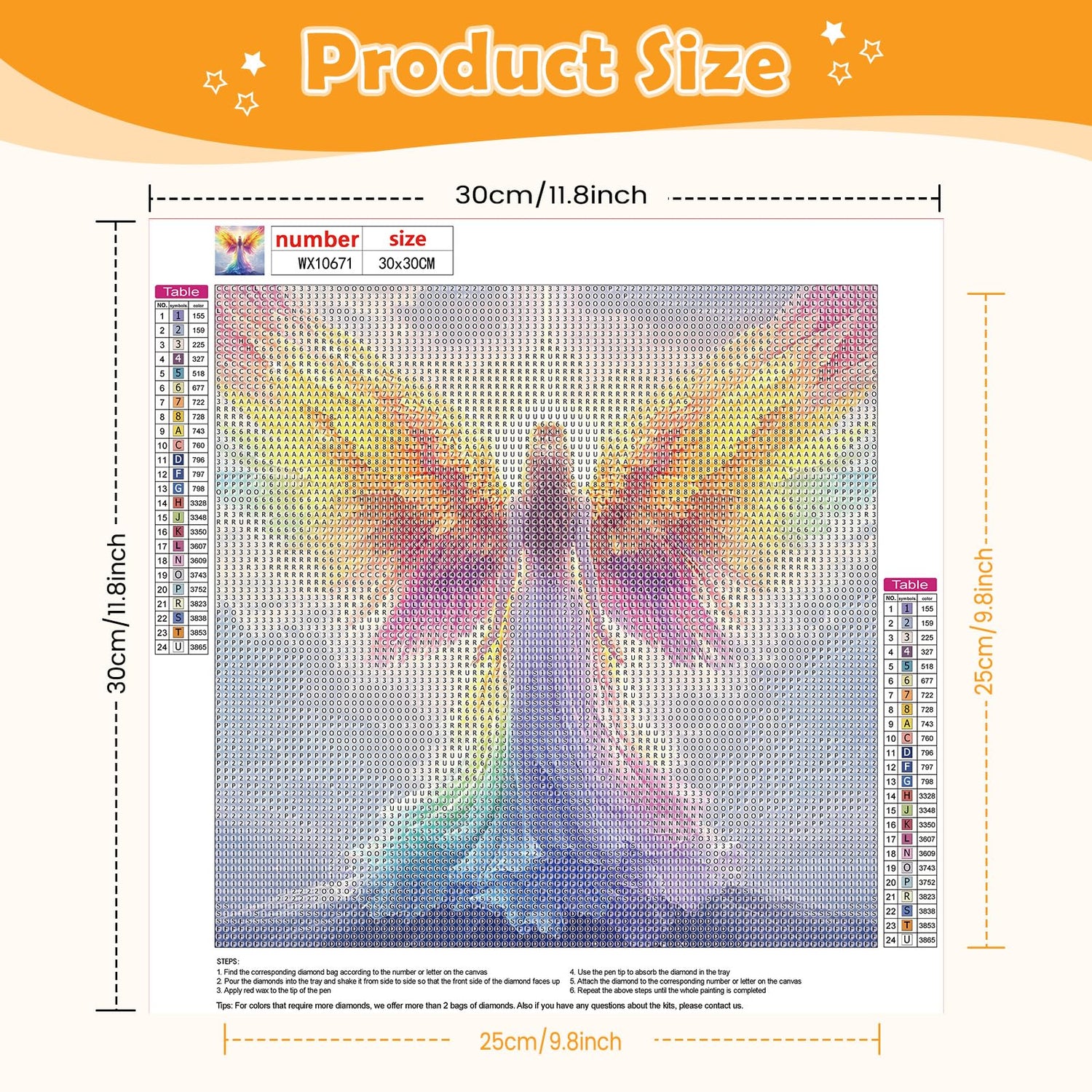 NEWENMO Diamonds Painting Kits for Adults Beginner, DIY 5D Rainbow Angel Diamond Art Paint with Round Diamonds, Full Drill Gem Art Angel Diamonds Art Painting for Home Wall Decor 12x12 Inch