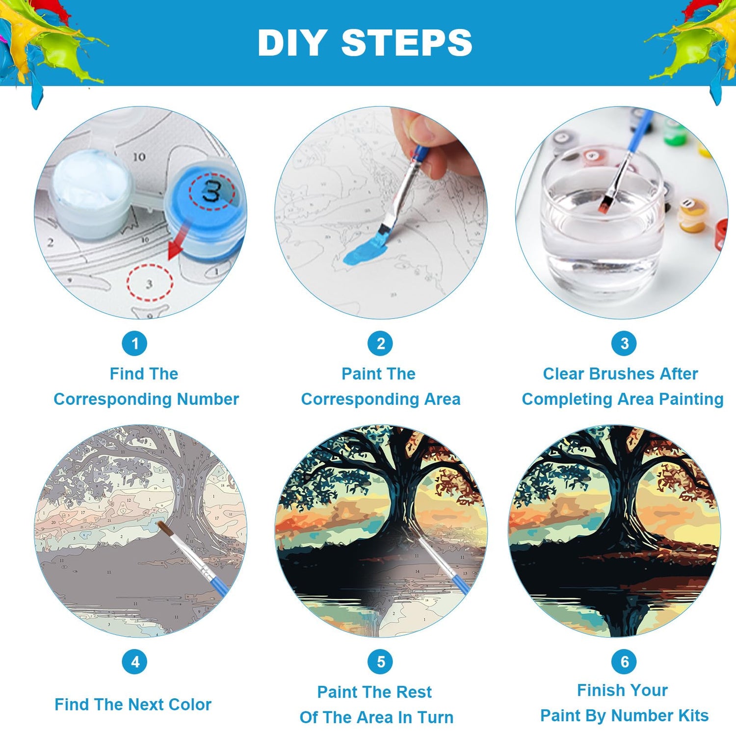 - SIMPLE PAINT BY NUMBERS STEPS: we categorize the acrylic paint set according to different numbers, when you make paint by numbers kit for adults creations, you only need to paint through the corresponding numbered paint, you can finish your paint by numbers adult creations very quickly