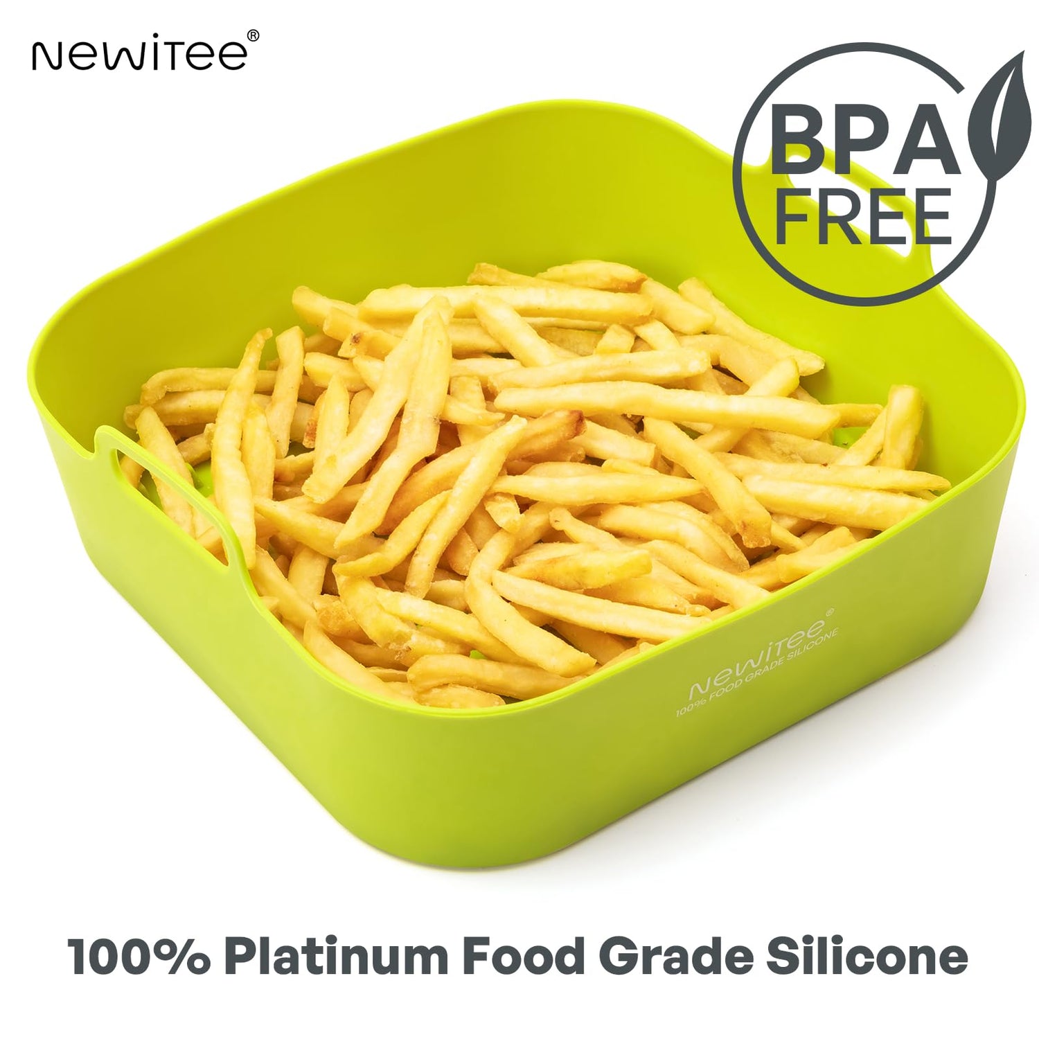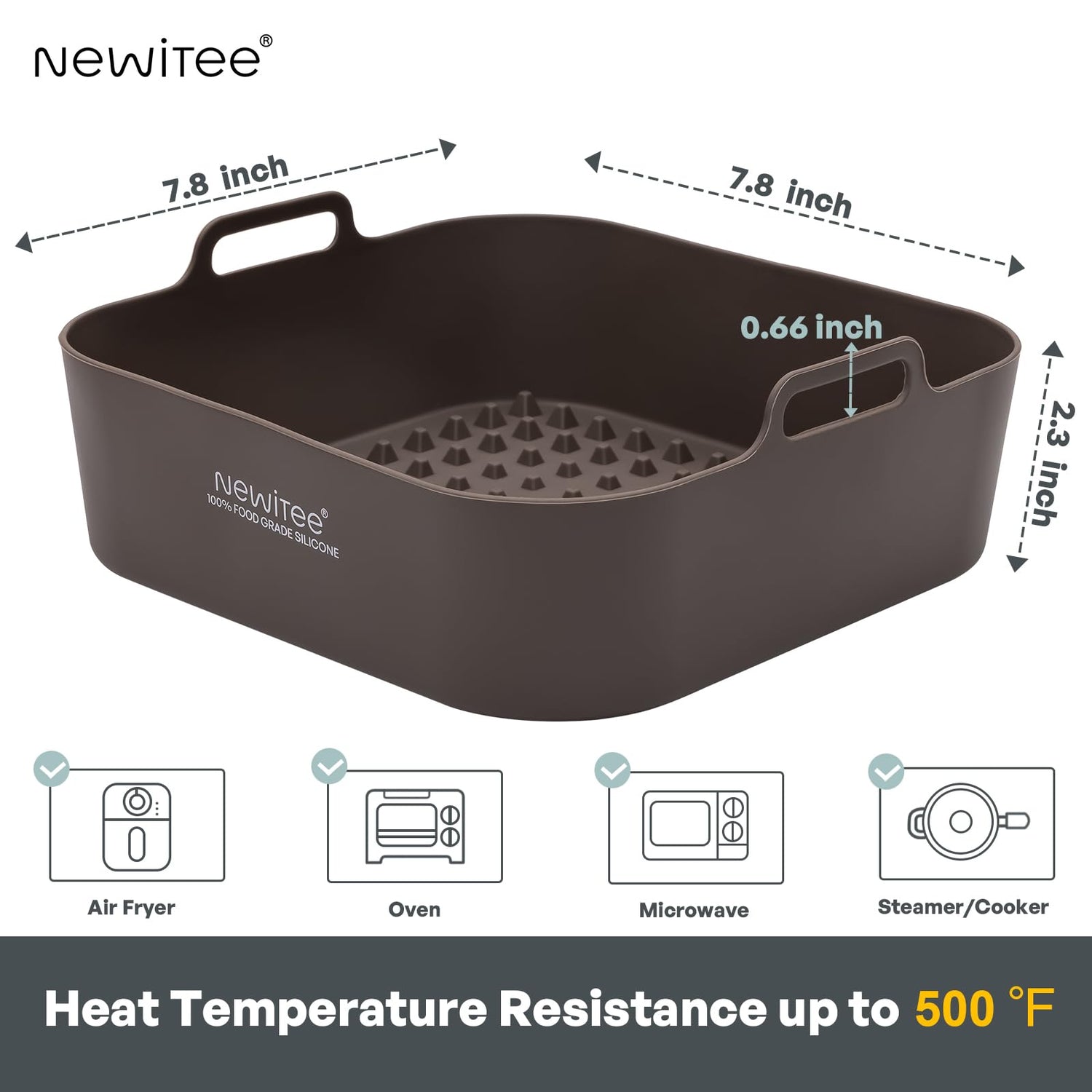 • SQUARE SILICONE AIR FRYER LINERS:NEWITEE exclusively designed air fryer liners silicone comes in two different colours, allowing you to easily identify when cooking the same or two different foods. Measures: 7.8 x 7.8 x 2.3 inches. Fits for 5 qt air fryer af141/af181