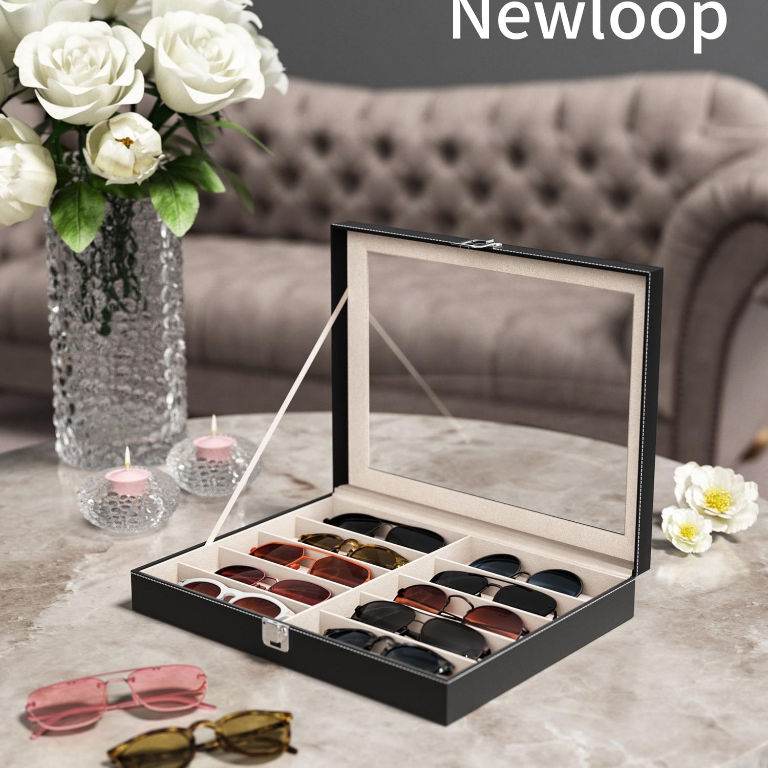 NEWLOOP 10 Slots Sunglasses Organizer for Multiple Pairs of Sunglass Display Case Storage Box for Women and Men Compact Version