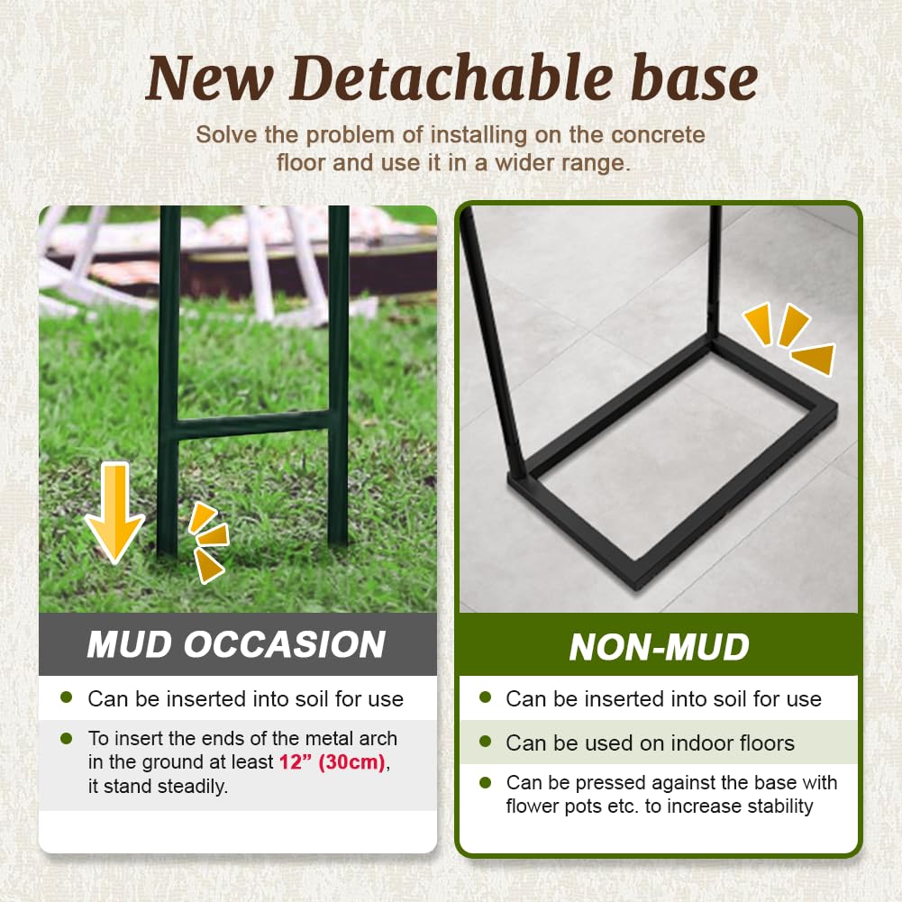- Compare to the normal the tube garden arch,our arch trellis is upgraded with excellet steel alloy, thicker tube making it stronger,corrosion-resistant,rust-proof,windproof resistant;While bearing flowers or climing plants as decoration, it will not deform the arch trellis, solid stand prolongs the service life.