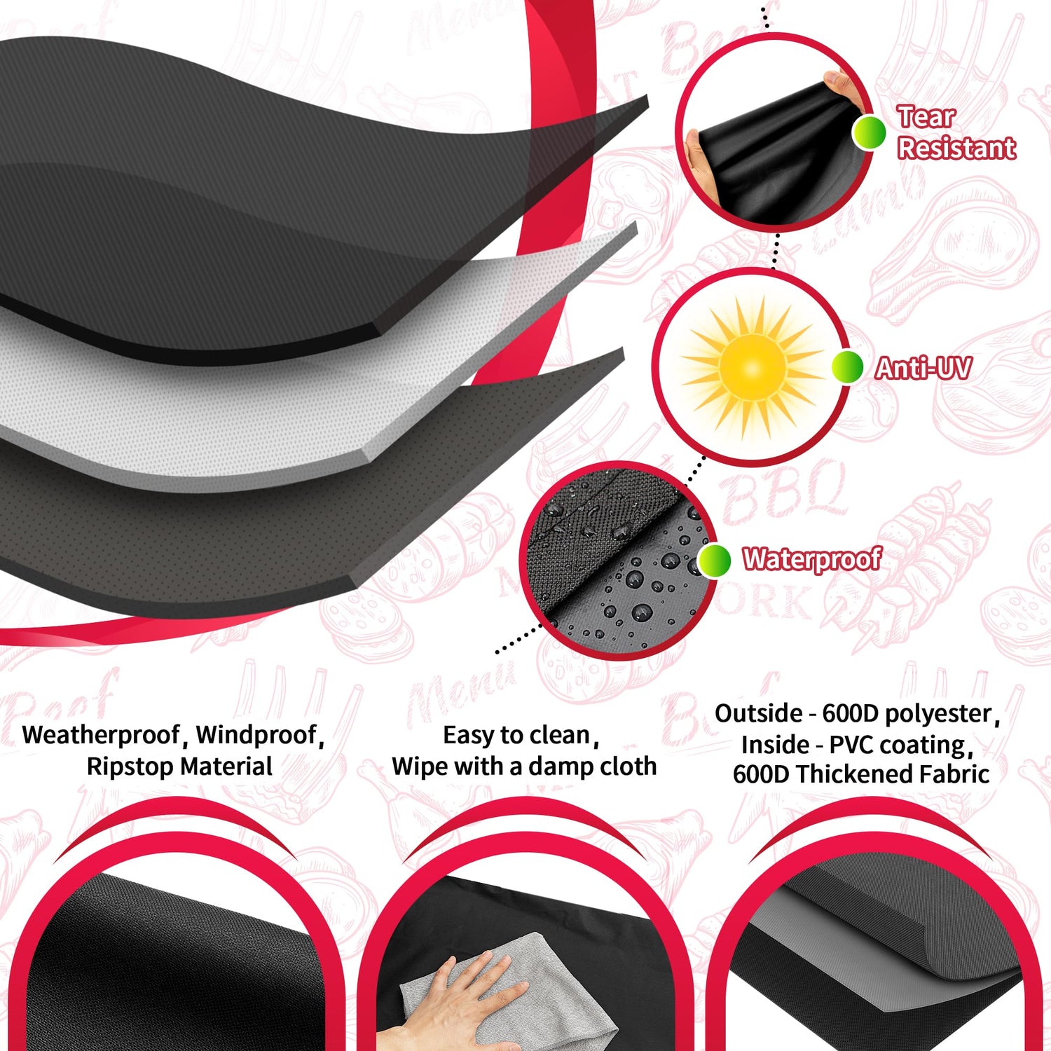 - 【Easy to Use & Clean】: This upgraded grill cover is lightweight, sturdy, and super easy to fold up for storage. Cleaning is a breeze, too—just rinse with water, and the dirt washes right off. Pro tip: Make sure your grill is cool before covering it up.