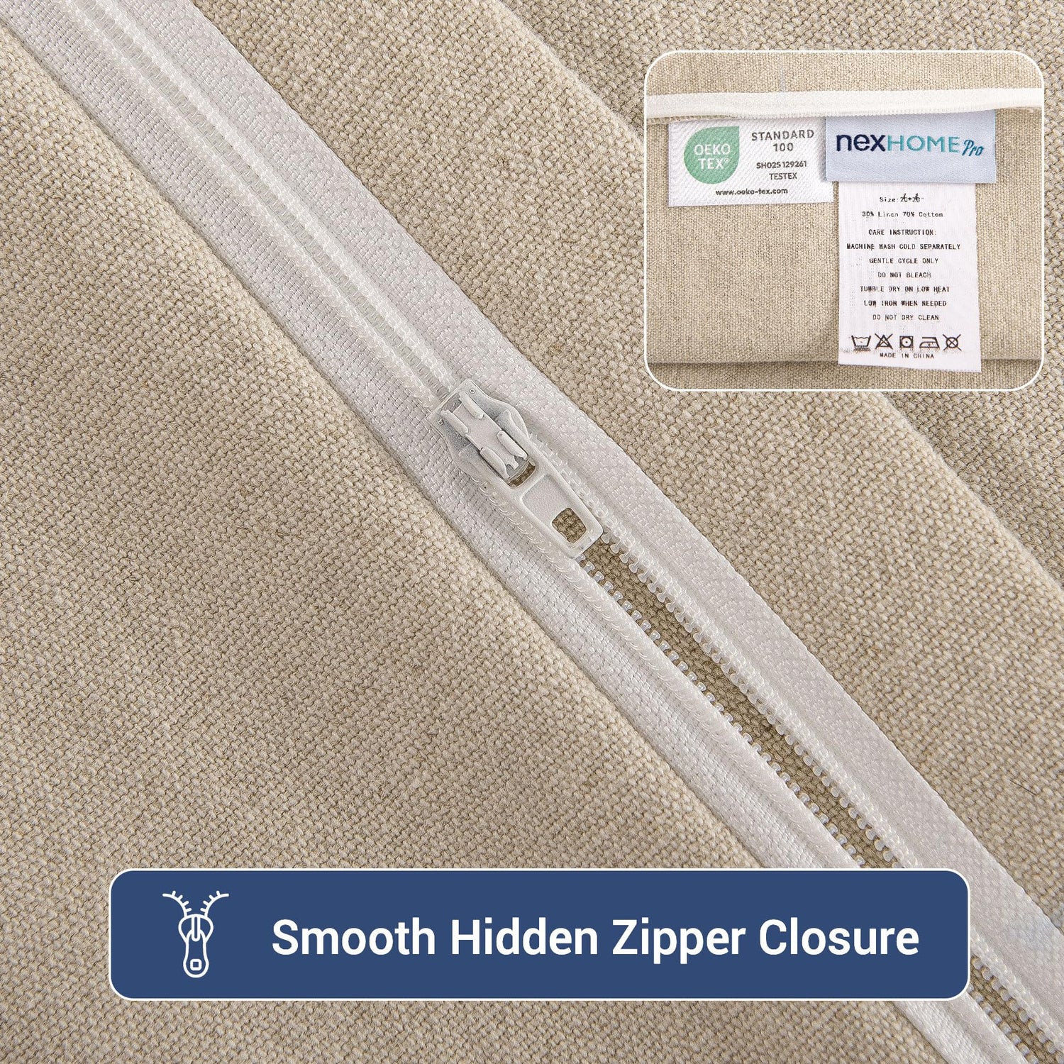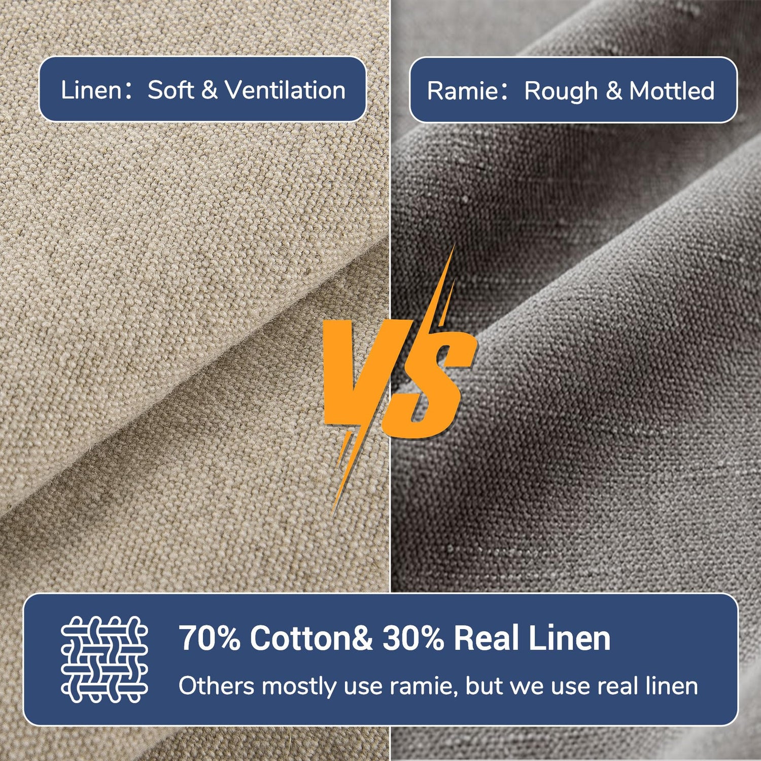 - 【Natural Linen Pillow Cover】Our pillow cover is made from 30% Linen&70% Cotton. Linen is plant fiber, durable but no elasticity. Blend with viscose, give it stretchy. The pillow cover is natural and breathable, which helps to keep you cooler in the summer and toasty throughout the winter months. It is a great choice at all season and will keep softer after every wash.
