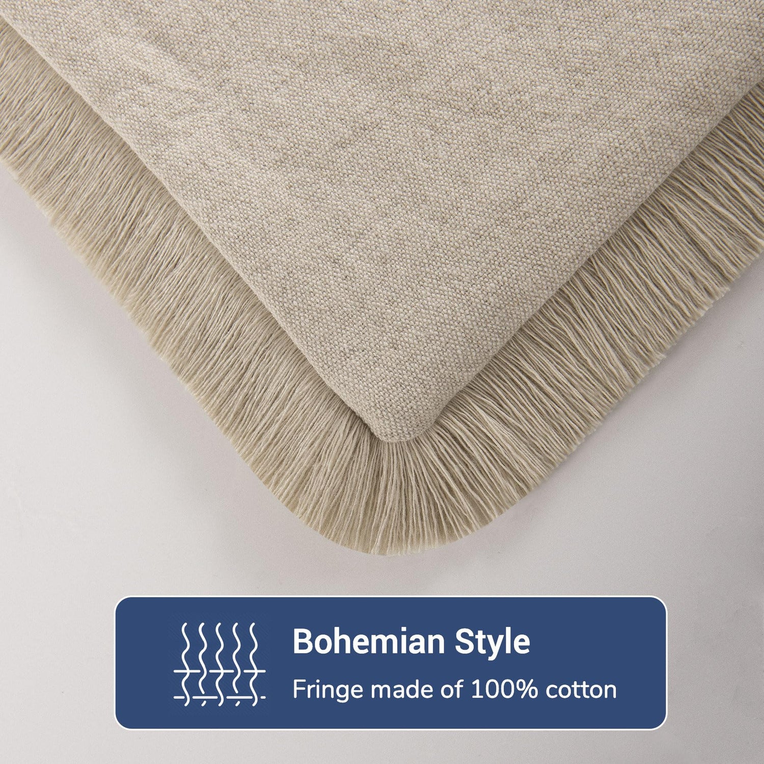 NEXHOME PRO Boho Throw Pillow Covers for Couch Set of 2 20"x20", Handmade Decorative Linen Pillow Covers Shams for Sofa, Living Room, Farmhouse Fringed Cushion Covers,Linen (NO Insert)