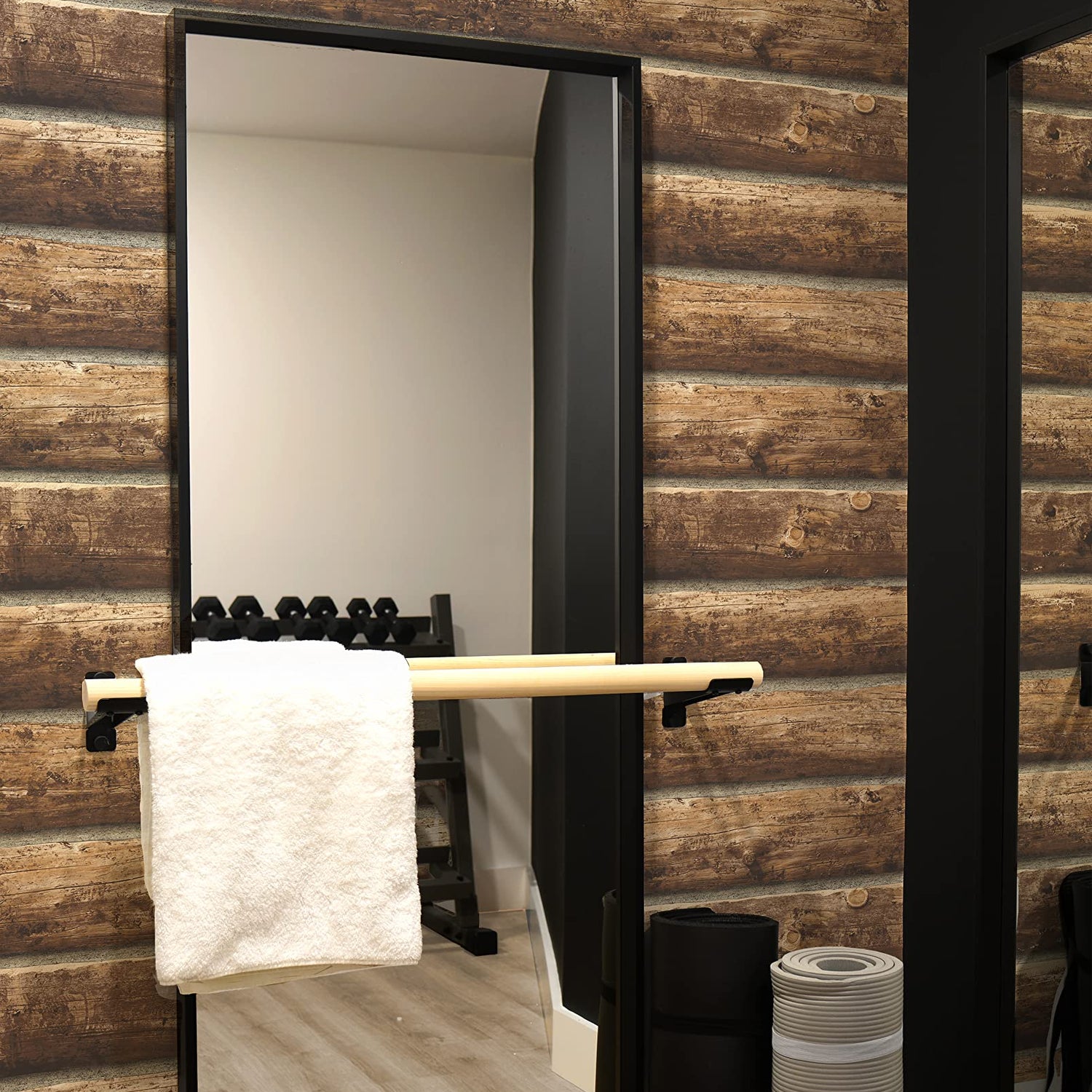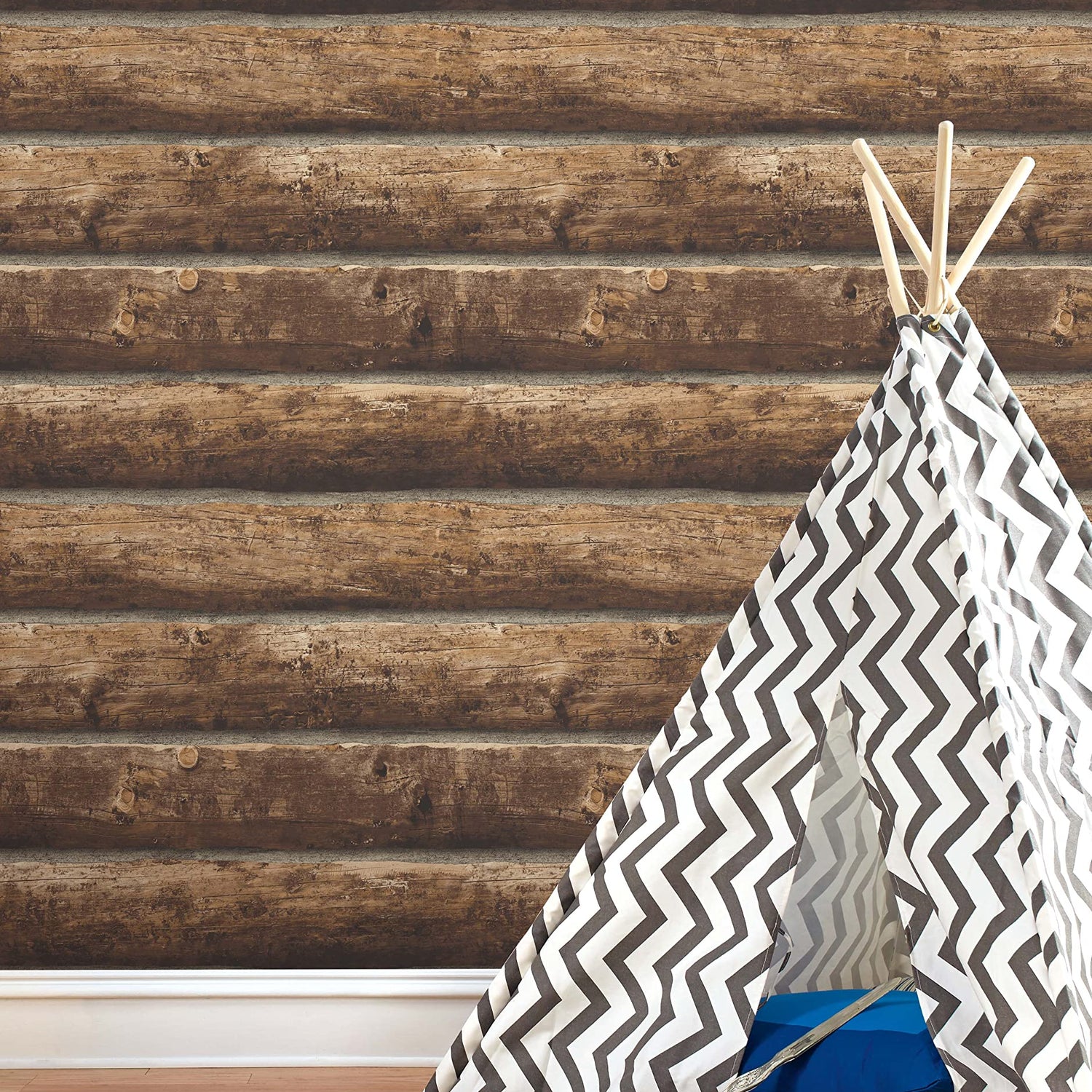 NextWall Faux Log Cabin Peel and Stick Wallpaper