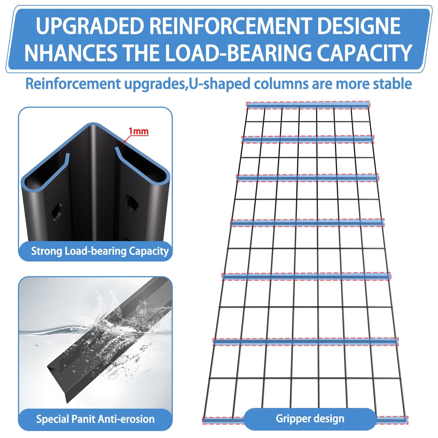 - Wire Mesh Shelves – Breathable & Moisture Resistant: Each shelf features a durable steel wire grid design that allows air to flow freely, helping prevent moisture buildup, dust collection, and odor. Perfect for storing tools, gear, or pantry items in garages, basements, or utility rooms.