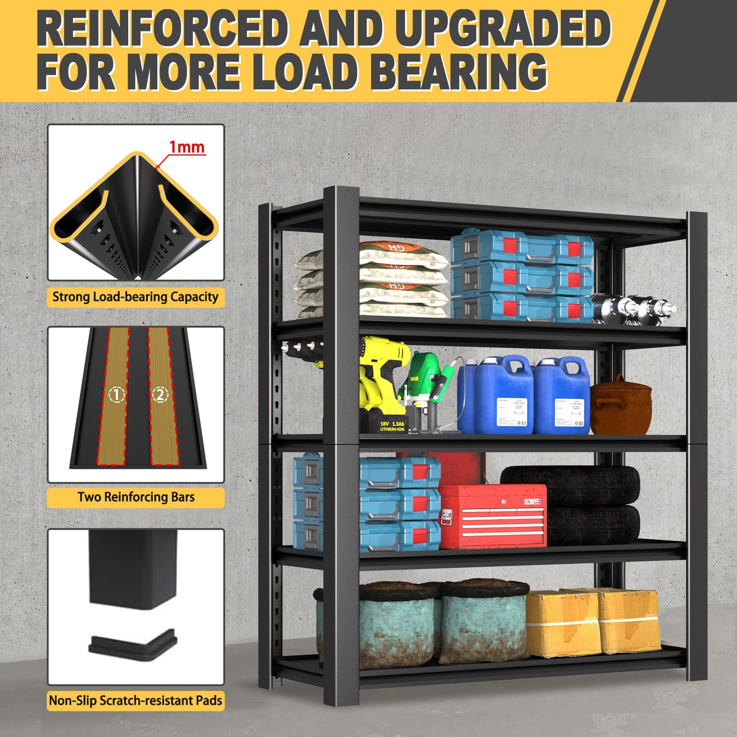 - Durable Metal Construction: Constructed from high-quality, rust-resistant metal with a powder-coated finish, this garage shelving unit is built for long-term use and maximum durability.