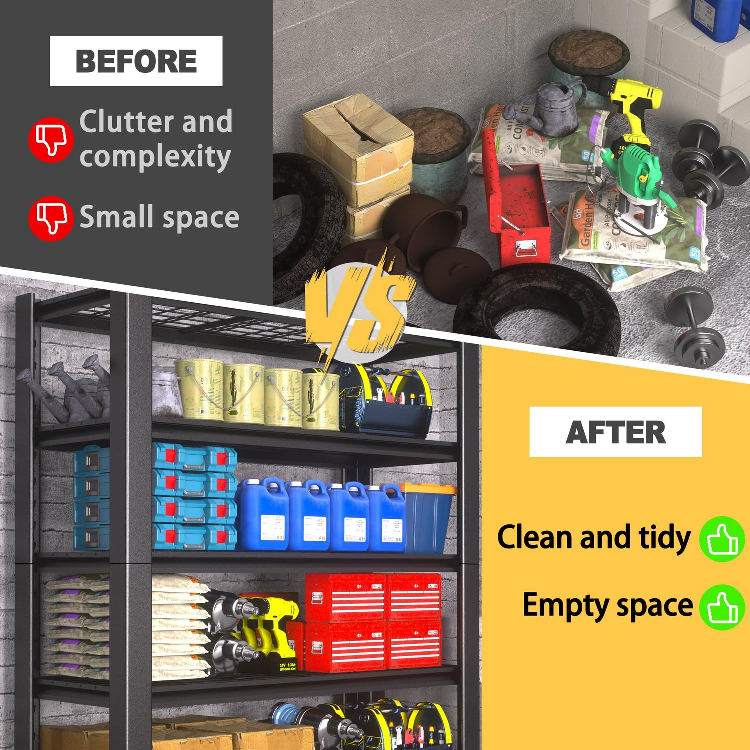 - Durable Metal Construction: Constructed from high-quality, rust-resistant metal with a powder-coated finish, this garage shelving unit is built for long-term use and maximum durability.