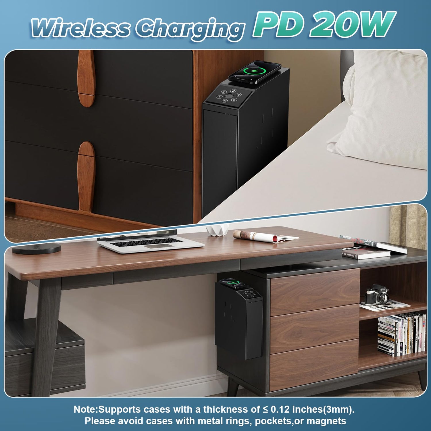- 🔋【Qi-Certified 20W Wireless Charging】- This gun lock box features a 20W PD fast wireless charging for iPhone & Samsung, smartwatch, earbuds. NOTE: Comes with external charger & Type-C cable (for wireless charging only). Unlock requires 4xAA batteries (NOT included, NOT used for charging)