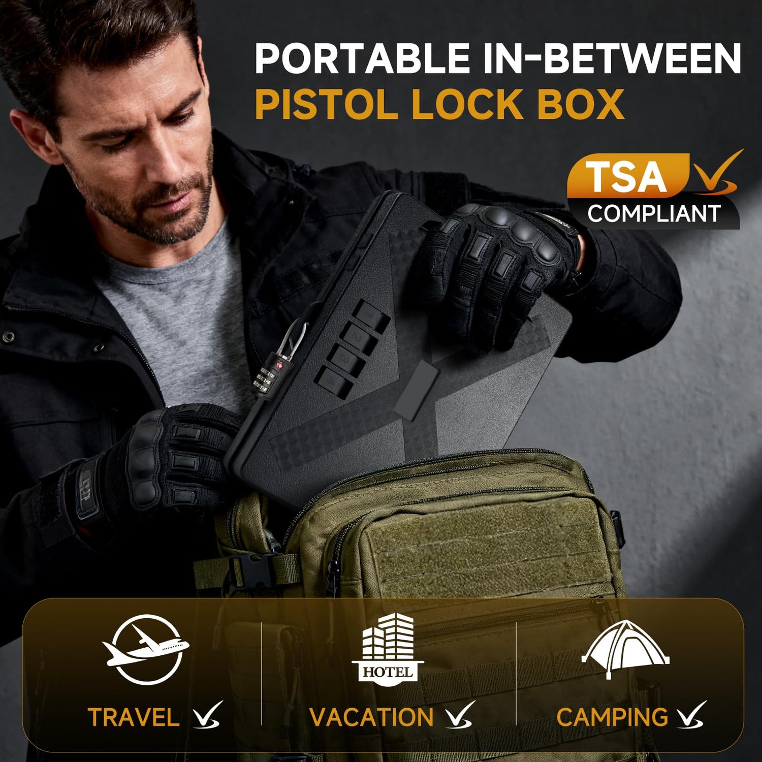 - 【Take Control of Your Firearm】Featuring a patented combination mechanism, our compact pistol safe offers 46 customizable code variations,lock box allows you quickly and reliably access your handgun using your personalized combination.