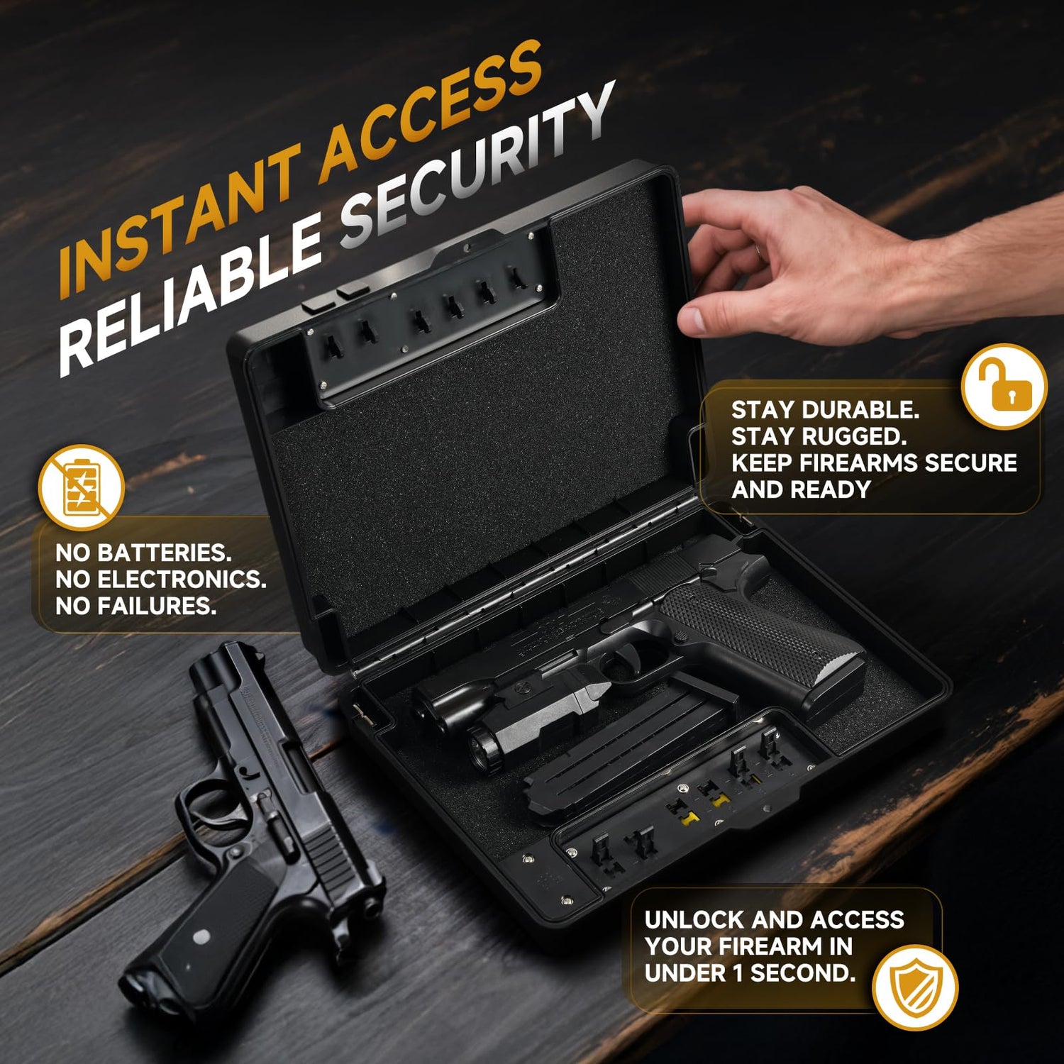 - 【Noneed Batteries&Electronics】Our gun safe for handgun guarantees reliable and immediate access when you need it most,Say goodbye to the frustration of malfunctioning biometric gun safe fingerprint scanners.