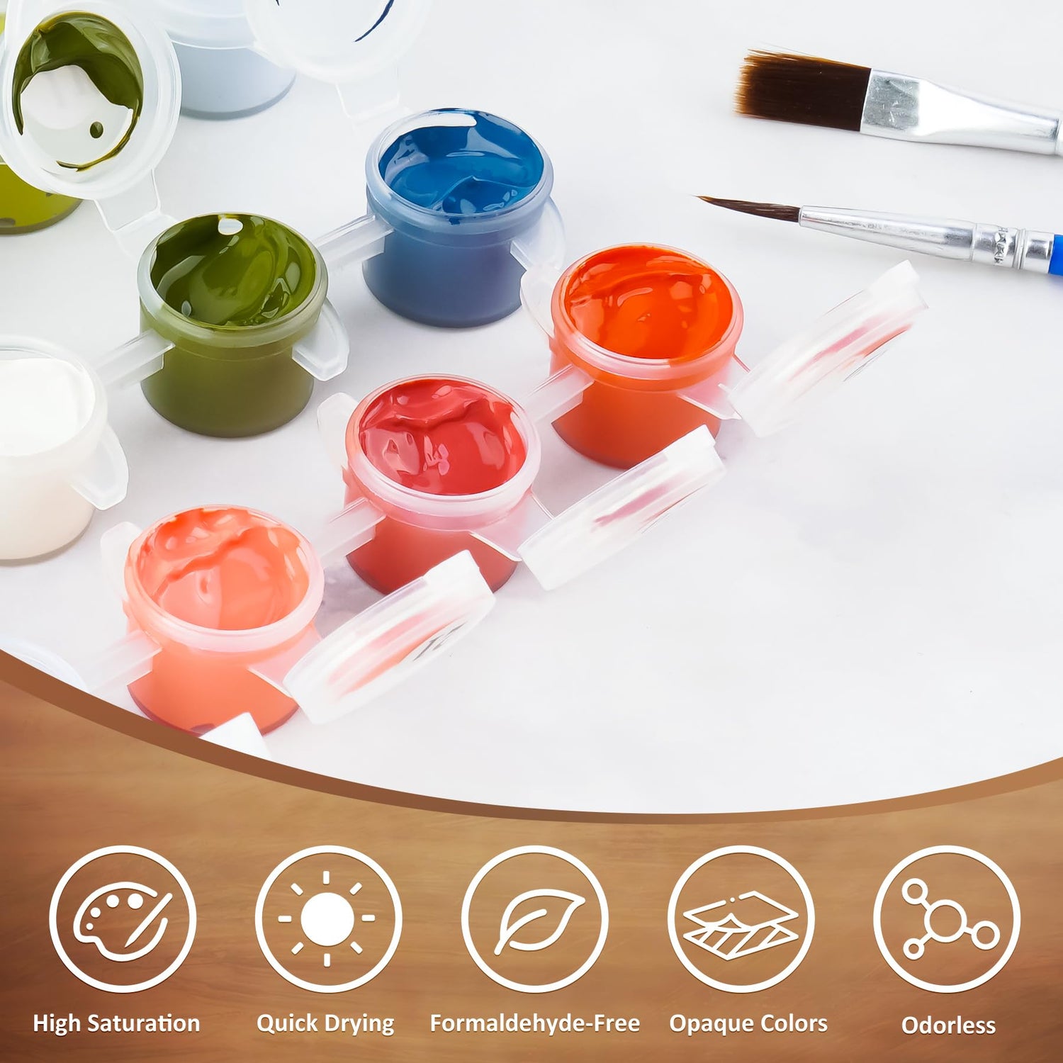 - What you'll get - 1 pre-printed cotton canvas (unframed), 1 set of high-quality acrylic paints, 5 plastic brushes, 1 color postcard guide, 1 numbered canvas reference paper. Everything is ready for you to embark on your artistic journey with ease!