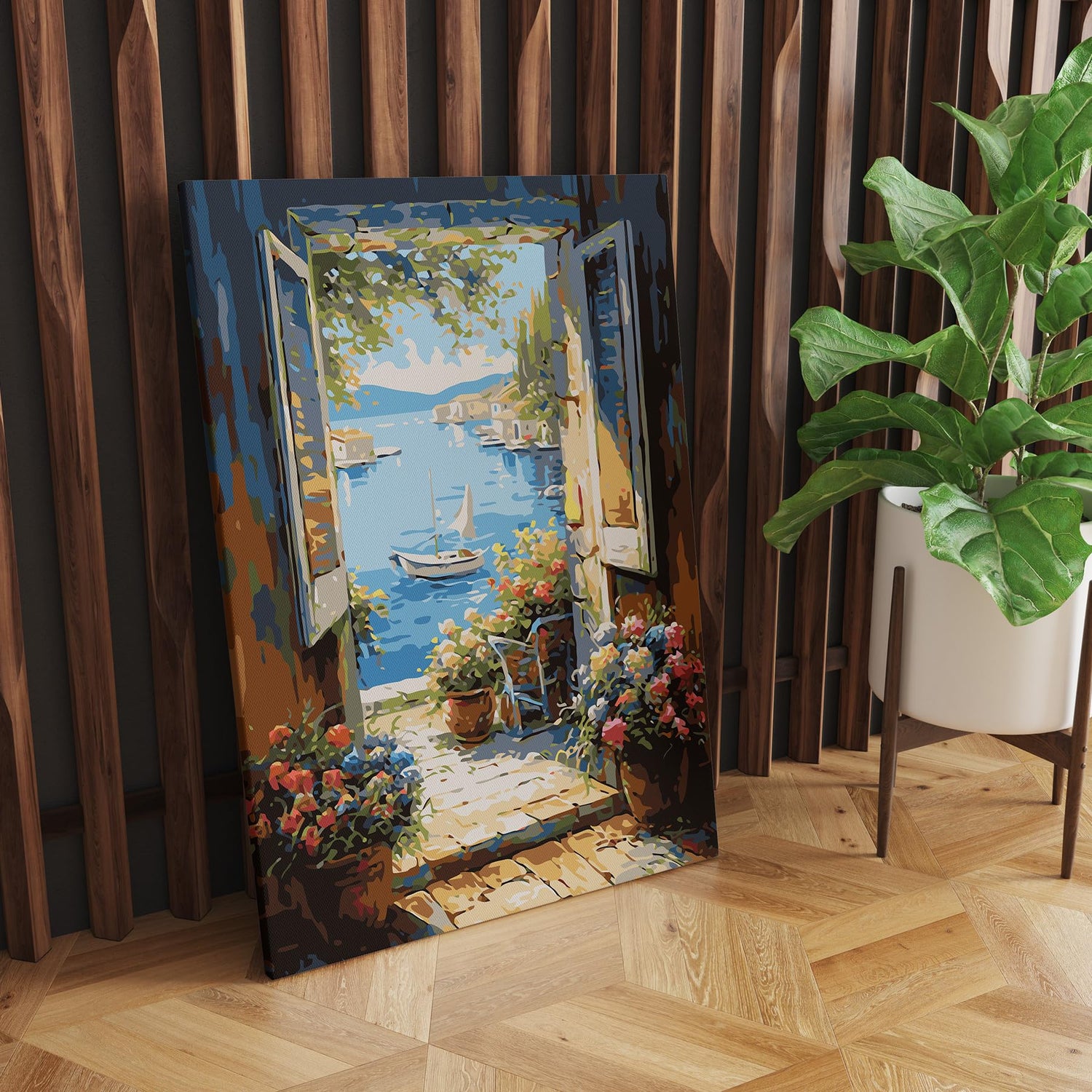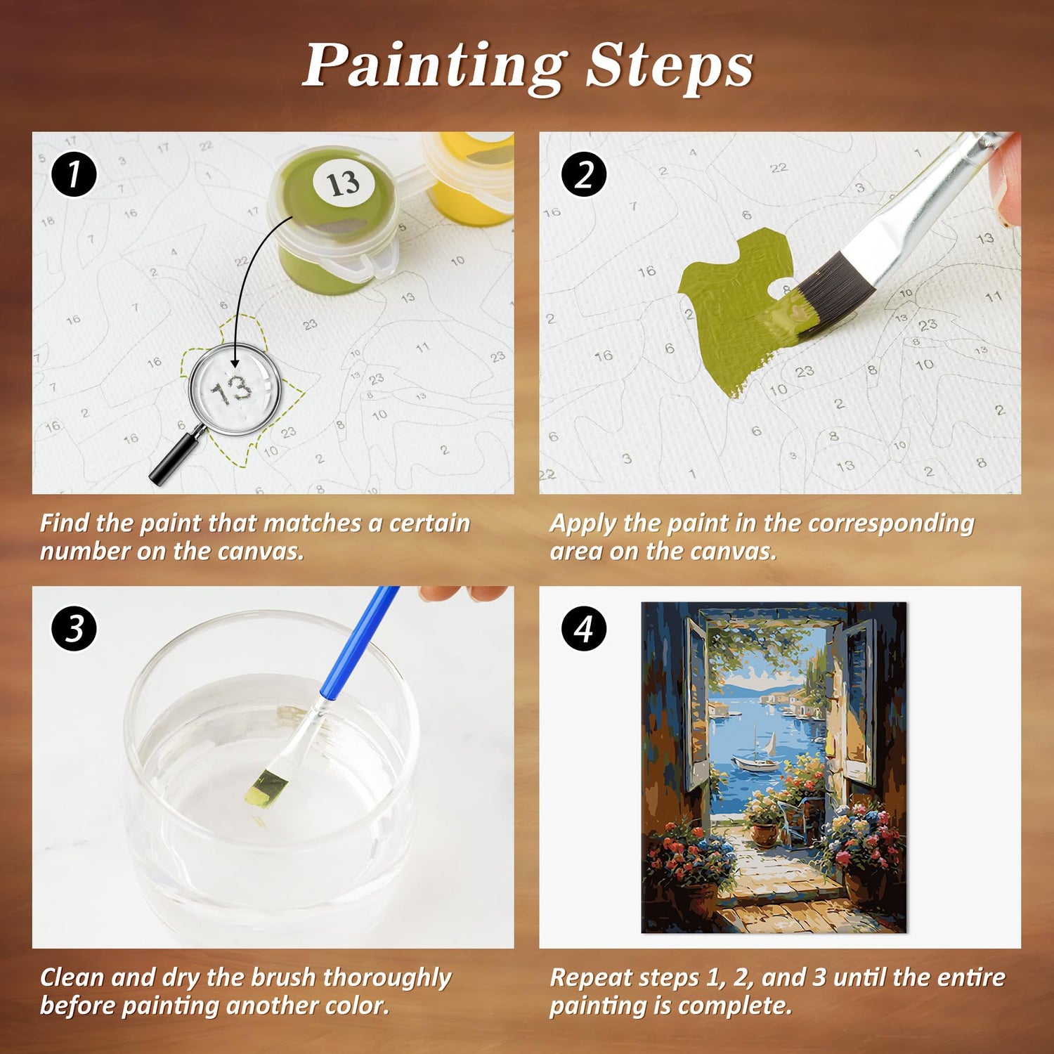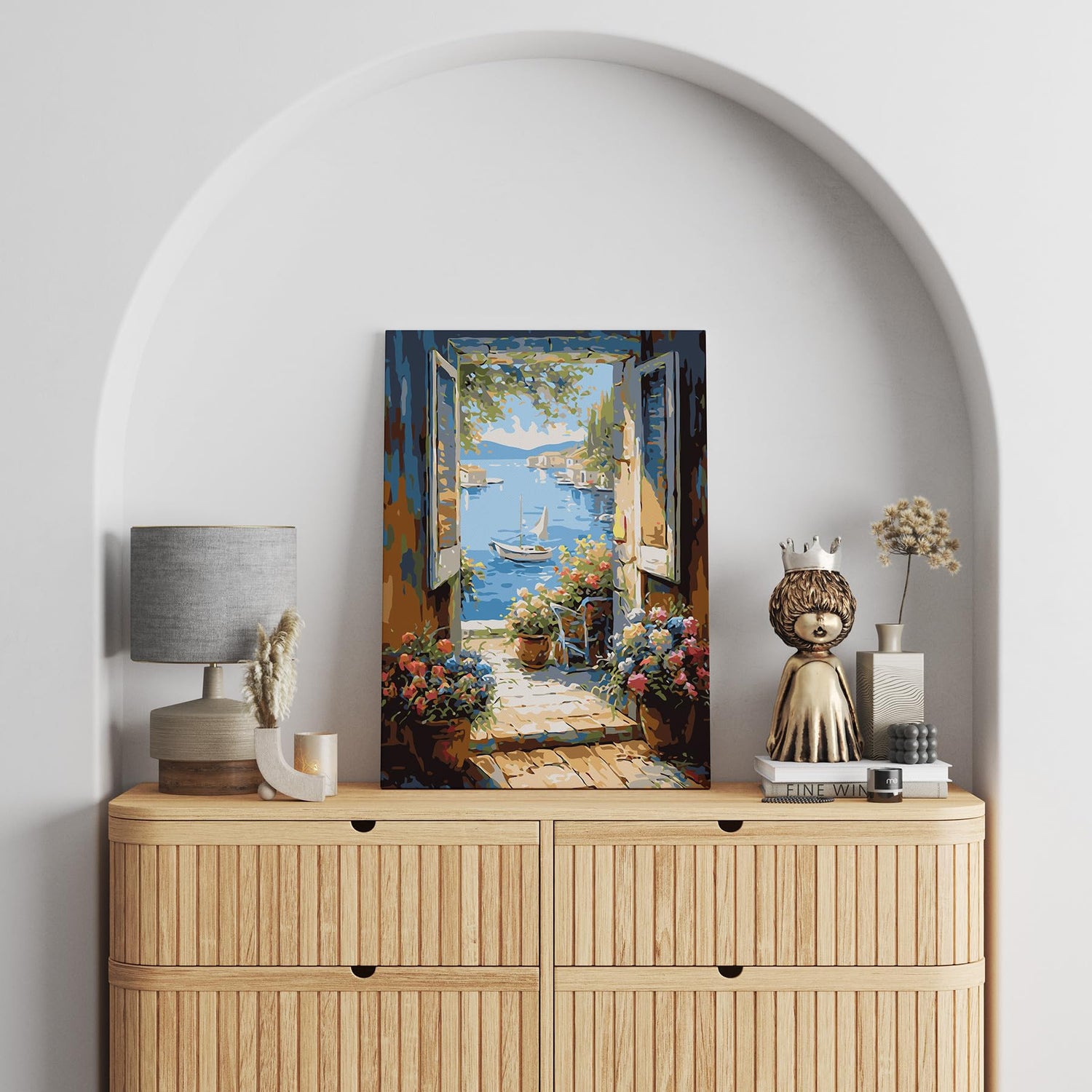 NiArt Paint by Numbers for Adults Beginners, DIY Paint by Numbers on Canvas for Kids, Oil Painting Kits for Gift Home Wall Decor, 10 Brushes and Acrylic Paint, 16x20 Inch, (Seaside Town, Unframed)