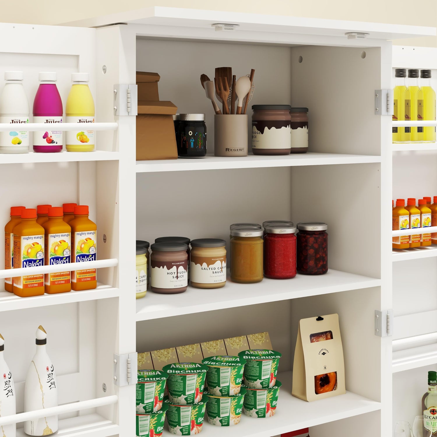 - Multi-Purpose Use: A versatile addition to any room, this multifunctional pantry cabinet extends storage space in kitchens, dining rooms, living rooms, break rooms, and more. The clear lines and white finish contribute to a simple yet stylish appearance, allowing the cabinet to seamlessly complement various furnishing styles.