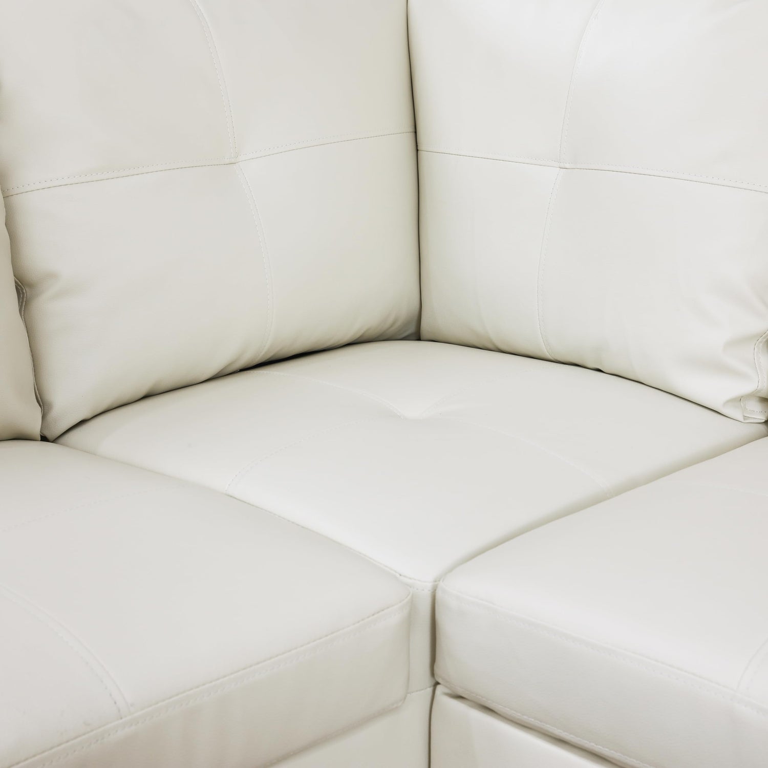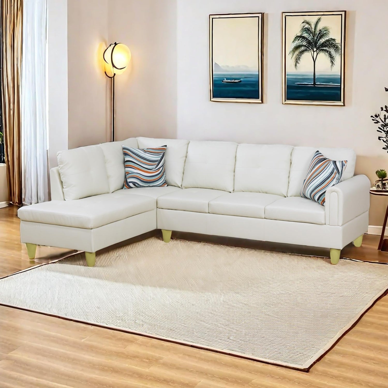 Details: Sectional Couches for Living Room 2 Pieces Modern Sectional Sofa with Left Chaise Sectional Couch with Solid Frame Classic L Shape Sectional Sofa Set with Faux Leather, White