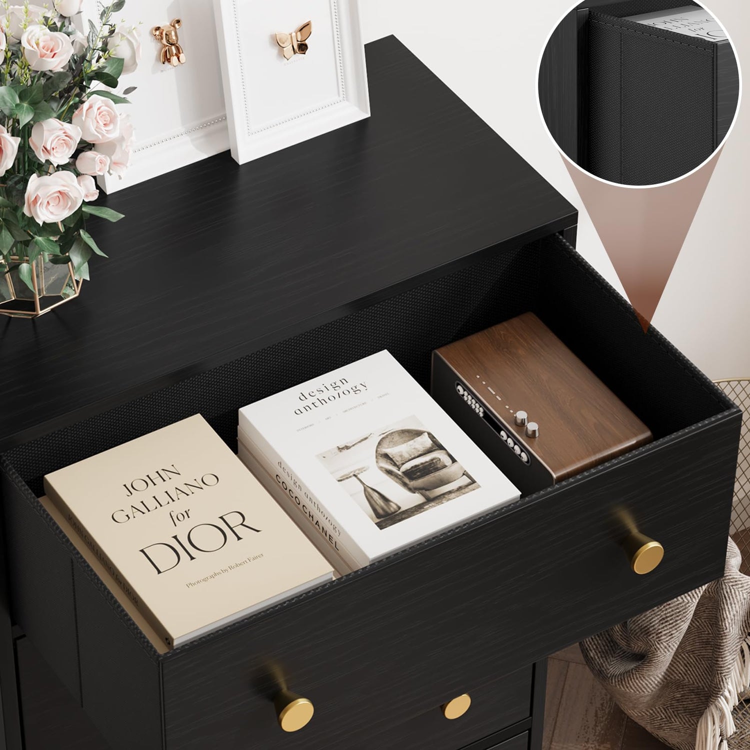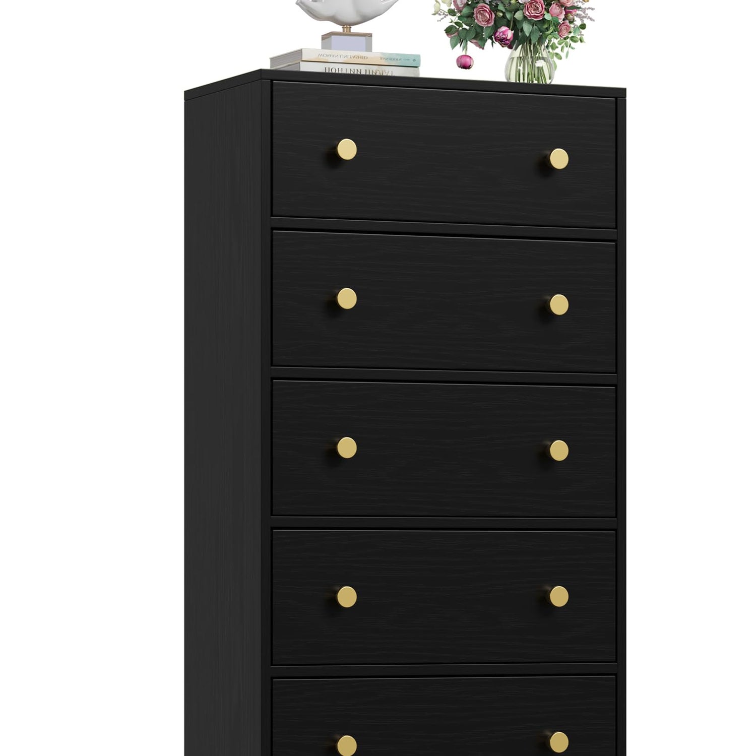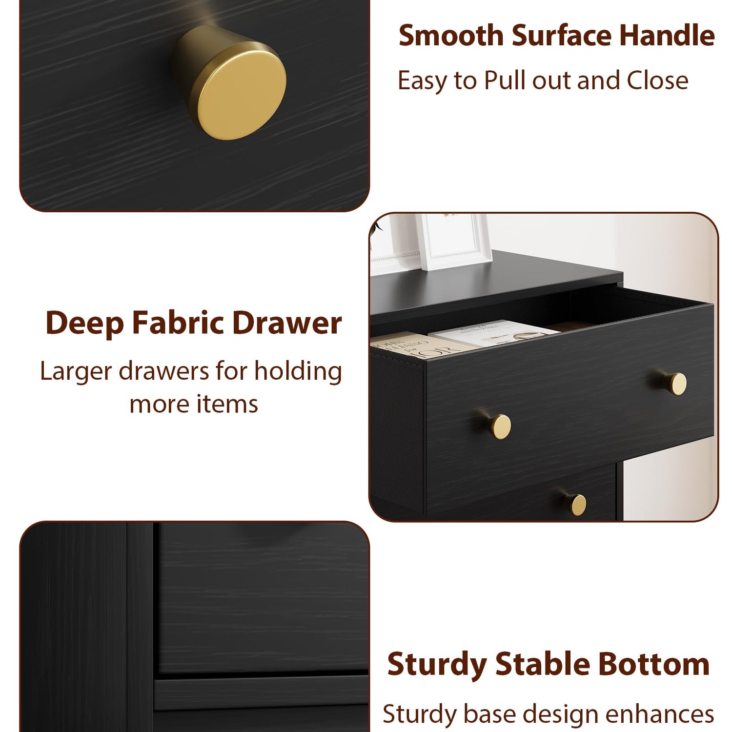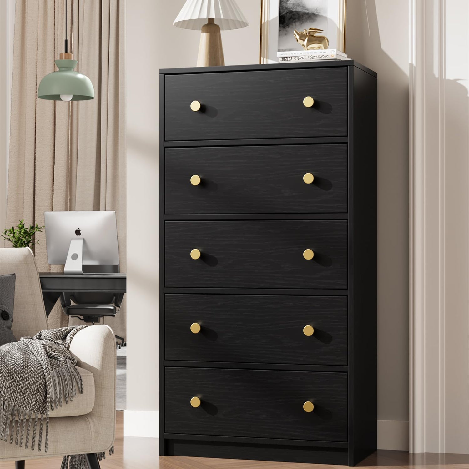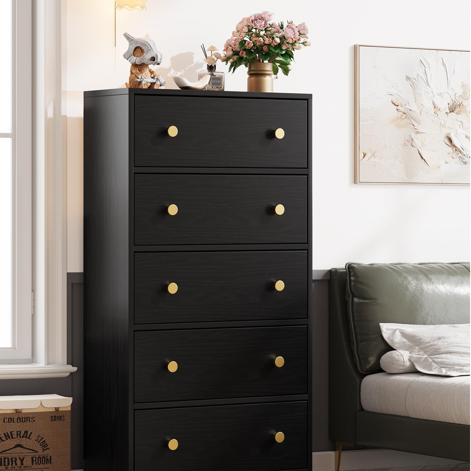 Nicehill Black Dresser for Bedroom with 5 Drawers, Fabric Dresser Storage Tower, Chest of Drawers for Closet, Living Room, Hallway, Entryway,Wood Dresser(Black)