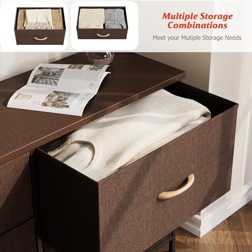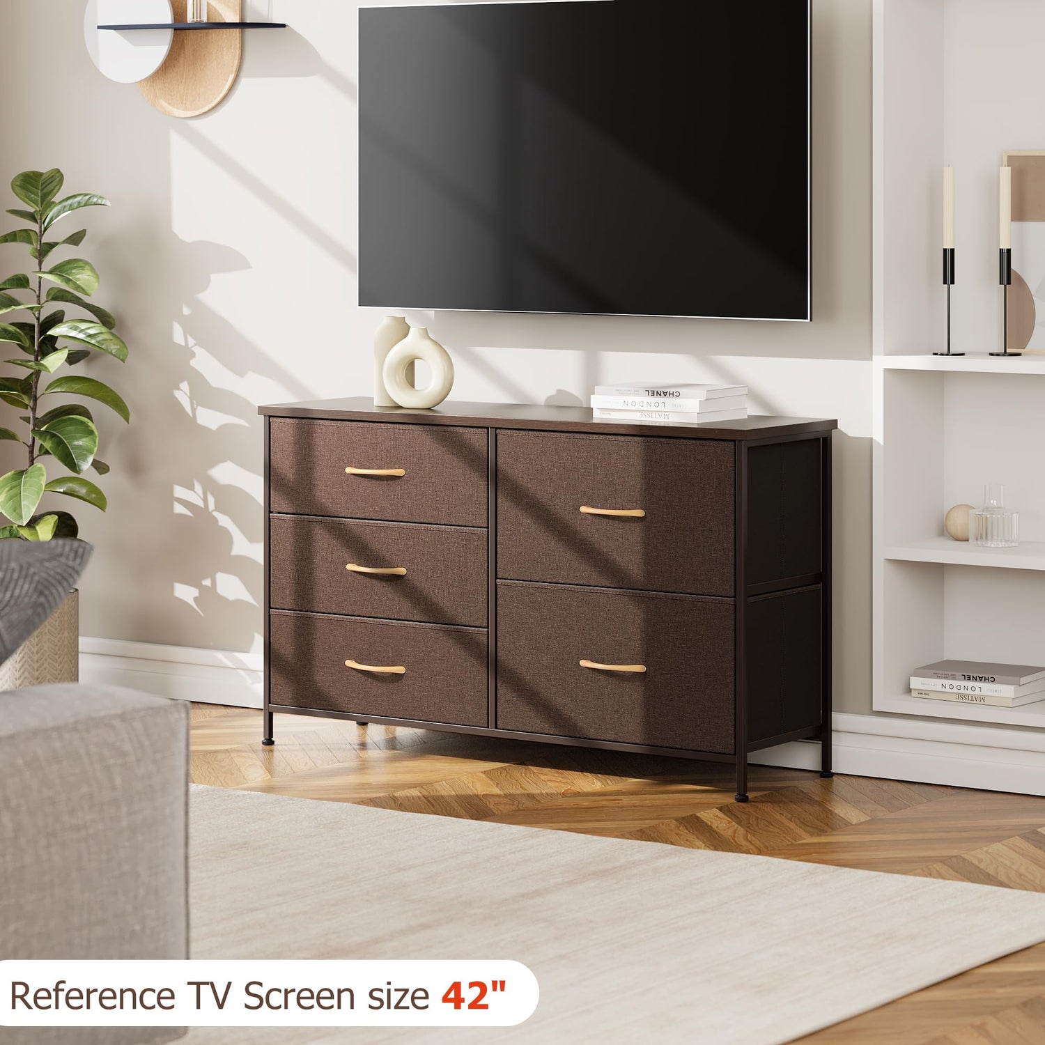 Nicehill Dresser for Bedroom with 5 Drawers, Storage Drawer Organizer, Wide Chest of Drawers for Closet, Clothes, Kids, Baby, TV Stand with Storage Drawers, Wood Board, Fabric Drawers(Brown)