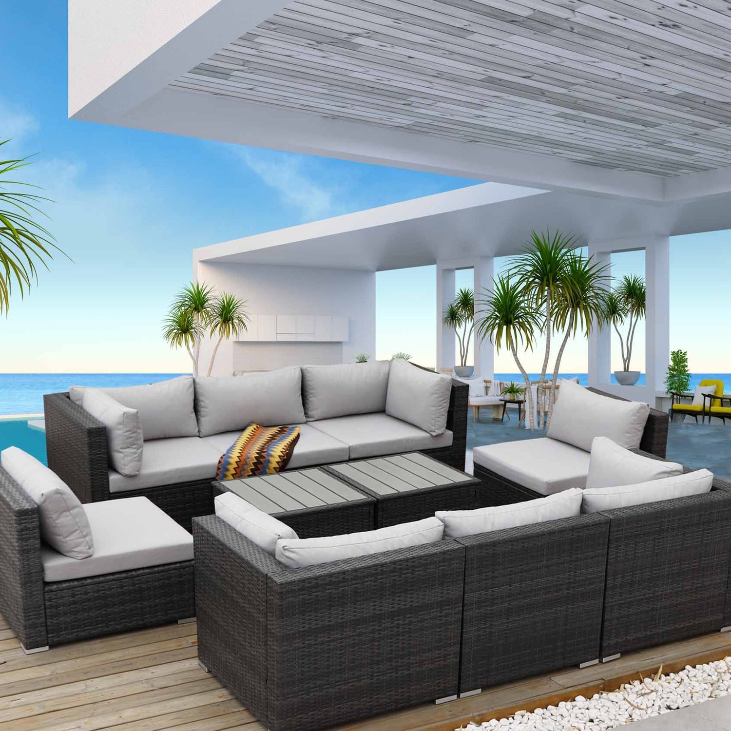 Details: NICESOUL Large Size PE Rattan Outdoor Patio Furniture Sectional Sofa Sets with 2 Coffe Tables Outdoor Wicker Conversation Sets Modern Luxury (Gray, 10 Pieces Sectional)