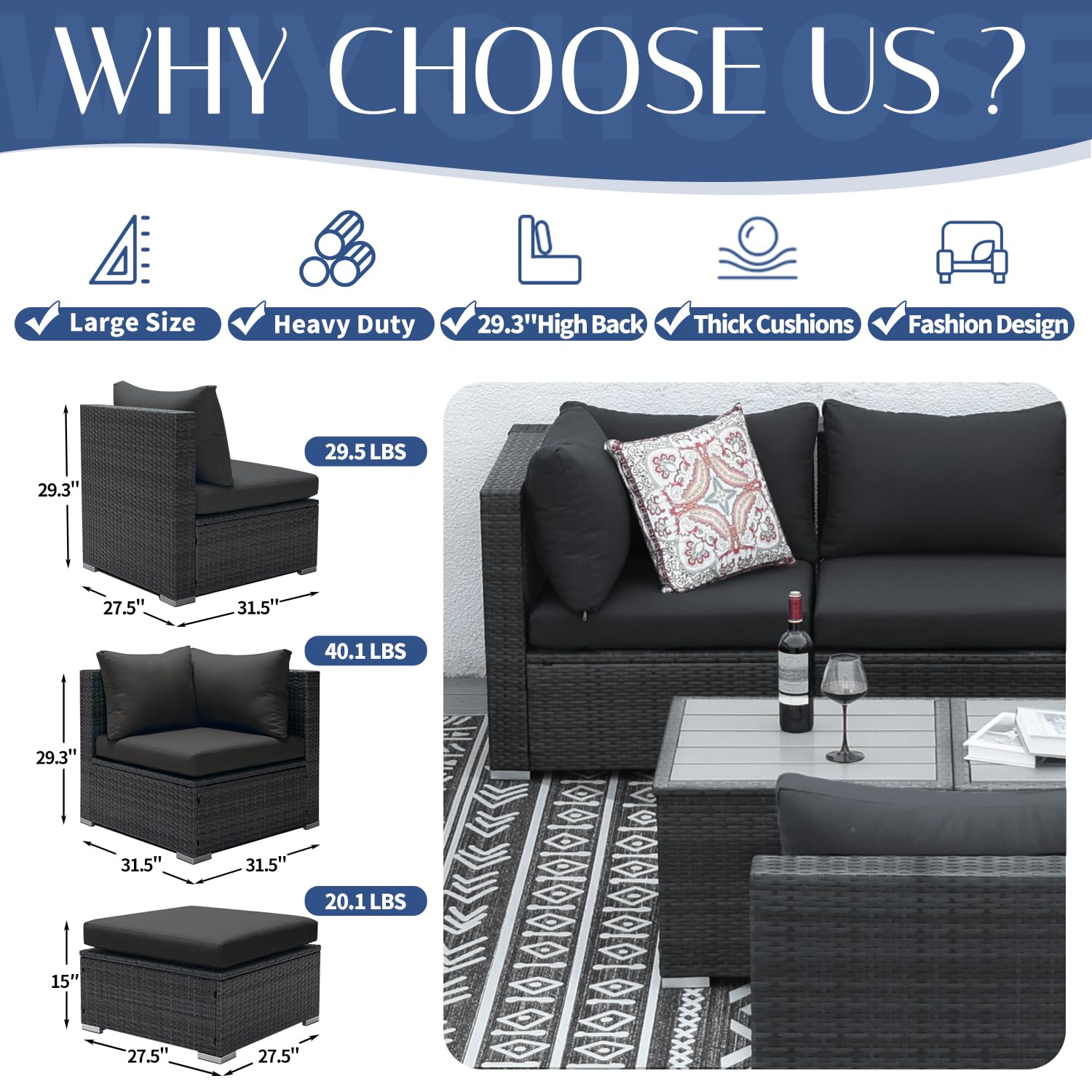 - 【Modern High-end Design】Our Patio Conversation Sofa Sets employee Thick PE Rattan Wicker looks more elegant and it is also environmentally friendly. Bringing a sense of magnificent at first look, a good set of outdoor furniture for any season.This Grey Rattan Outdoor Furniture Set also matches coffee table, making the whole set more advanced. It's a set of Outdoor Wicker Furniture possessed Modern, elegance and practicality.