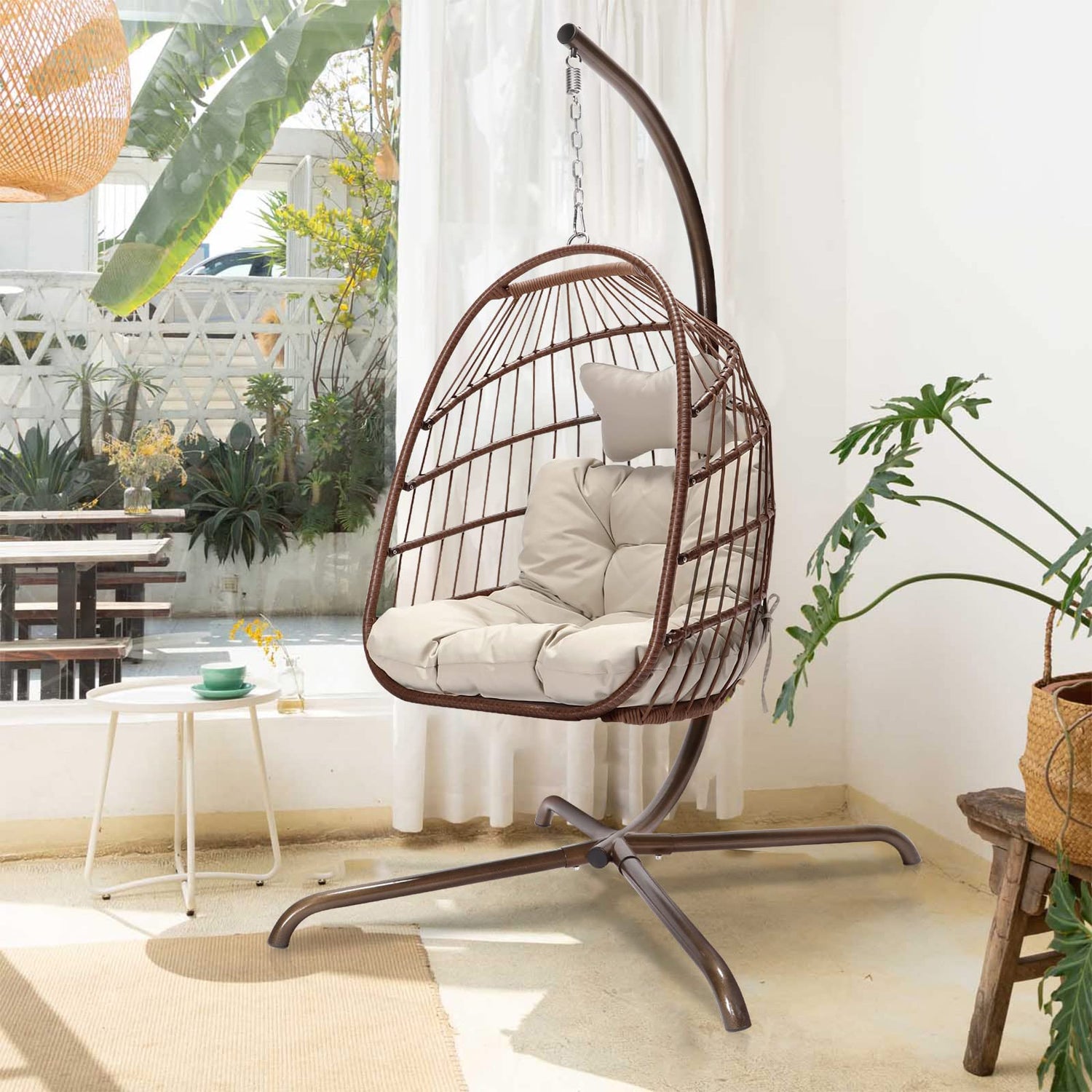 - INDOOR OUTDOOR: This unique swinging chair is the perfect addition to any space outside, like a backyard patio, or deck, in a sunroom bedroom living room, garden, poolside, or front porch