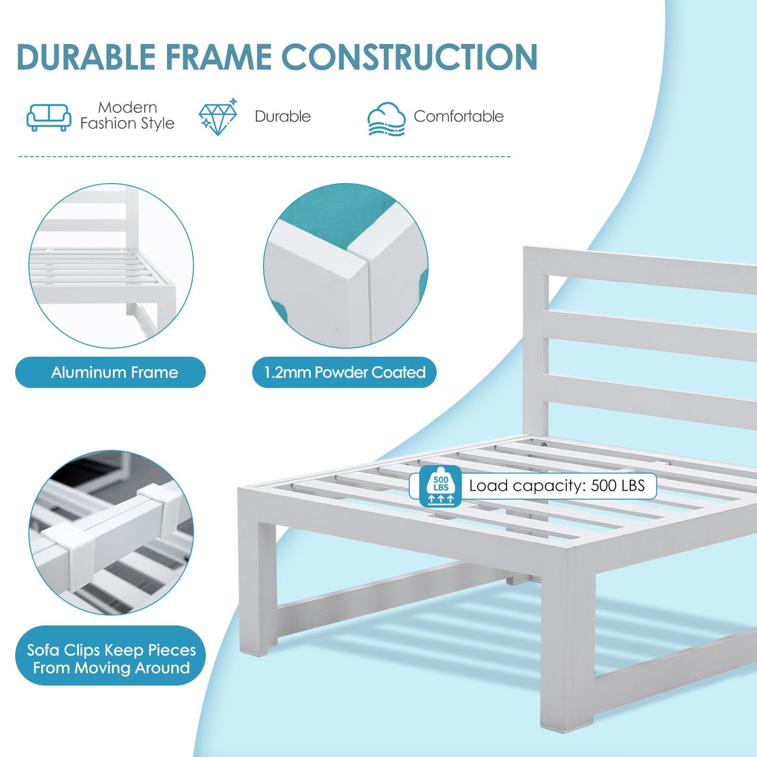 - Modular Combination: Easy to Nicesoul's modular AquaShield Aluminum Patio Sofa Series design makes rearranging for any outdoor setting, activity, or occasion easy; Your sectionals can be arranged and rearranged for an unlimited number and color of configurations