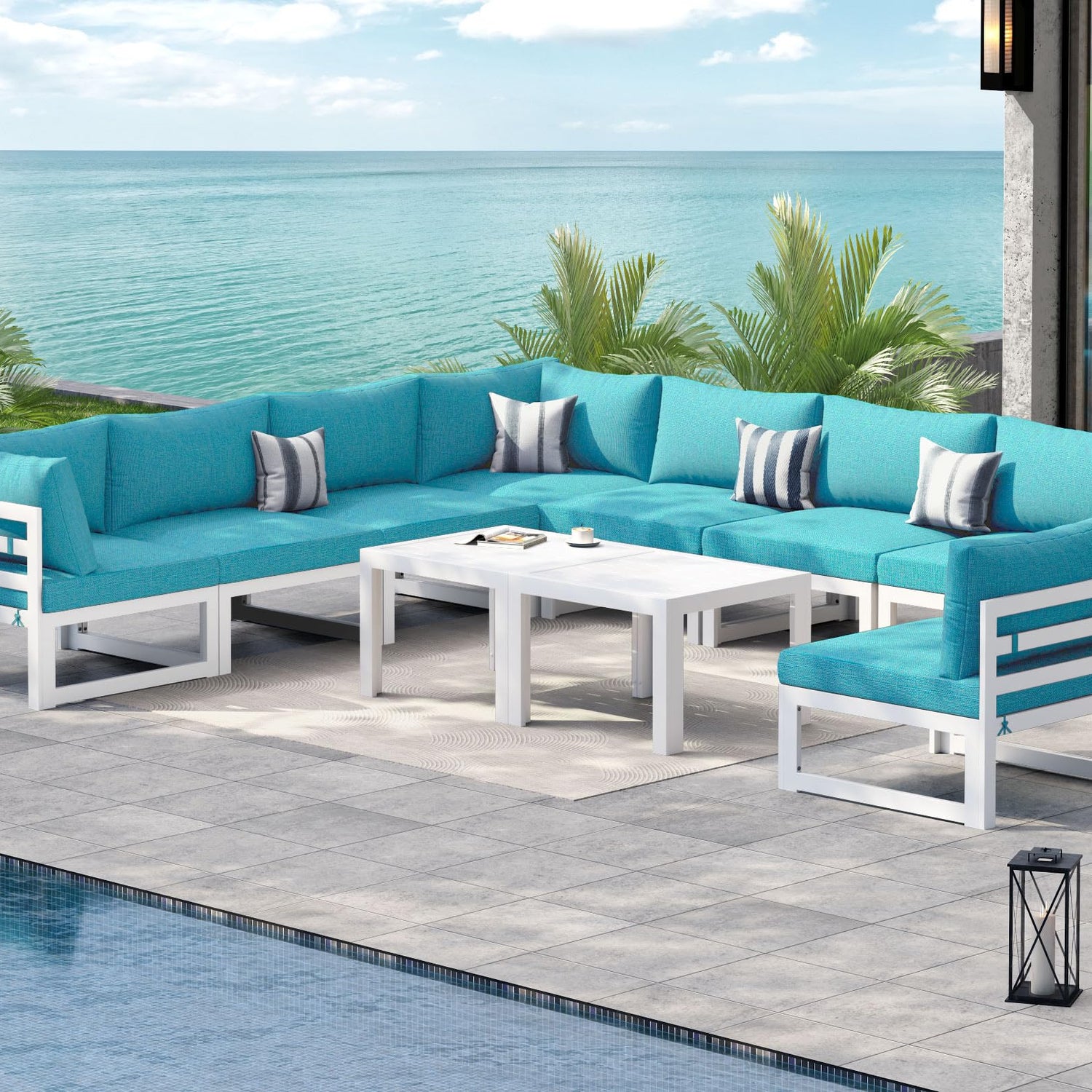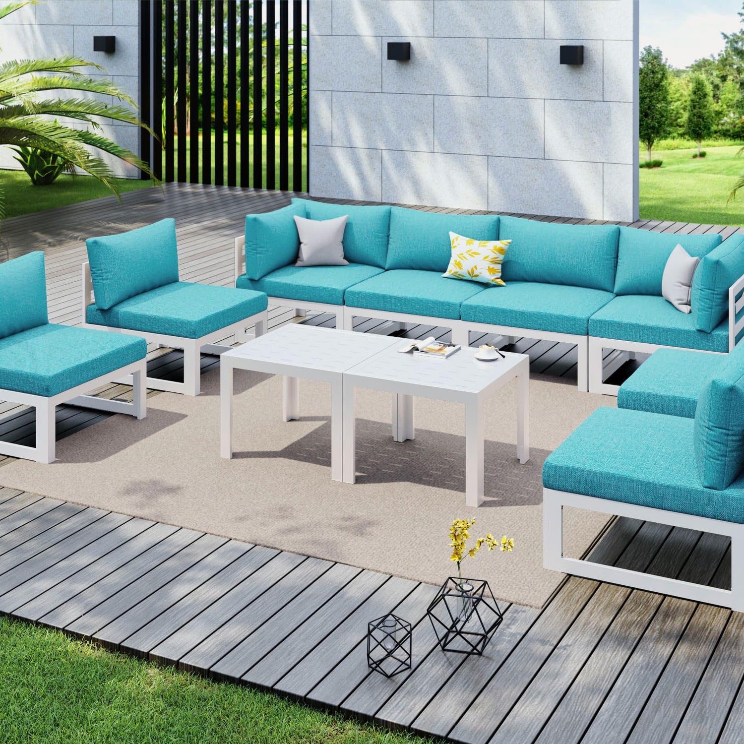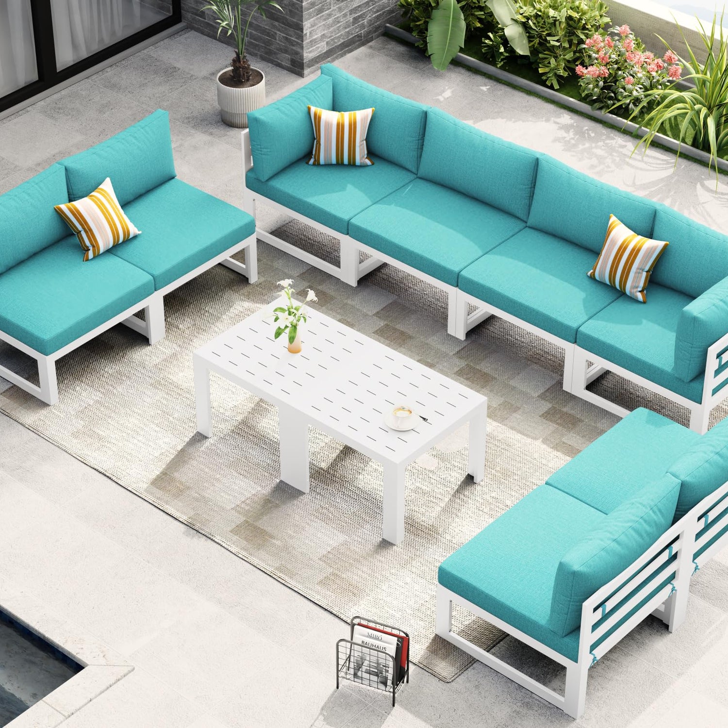 NICESOUL 10 Piece Oversized Modern Aluminum Patio Furniture Set, All Weather Rust Resistant Modular Sectional Sofa with Side Table, 500 lbs Heavy Duty Comfortable Outdoor Couch for Backyard Lawn, Teal