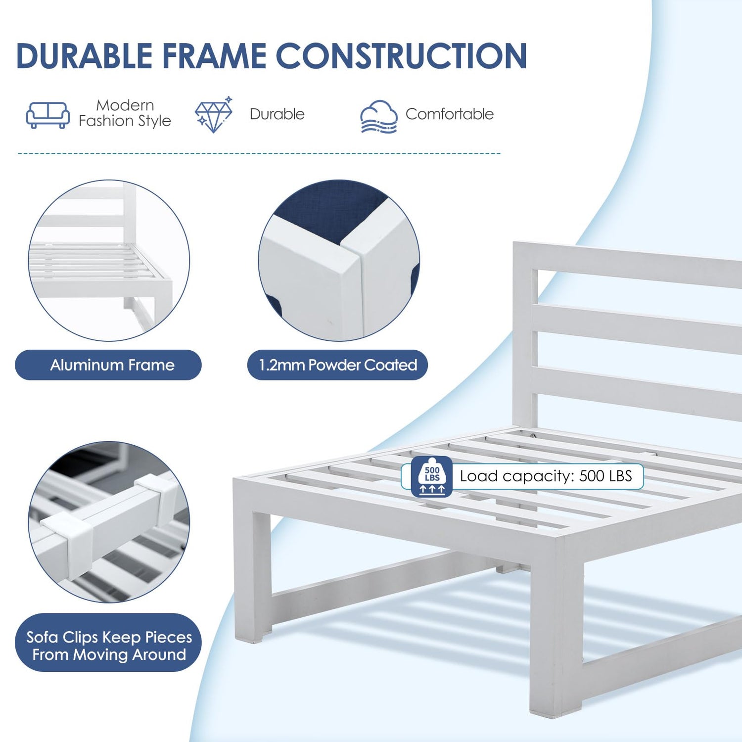 - Easy to Assemble & Effective Support: Our outdoor aluminum sofa is easy to assemble, with each seat typically taking just 15-20 minutes; To ensure a smooth assembly process, we provide a comprehensive installation manual, helpful video guides, and all necessary accessories; Plus, the whole set is under a one-year manufacturer's warranty, and don't worry, we are dedicated to providing exceptional professional customer support with timely assistance if any questions or assistance needed