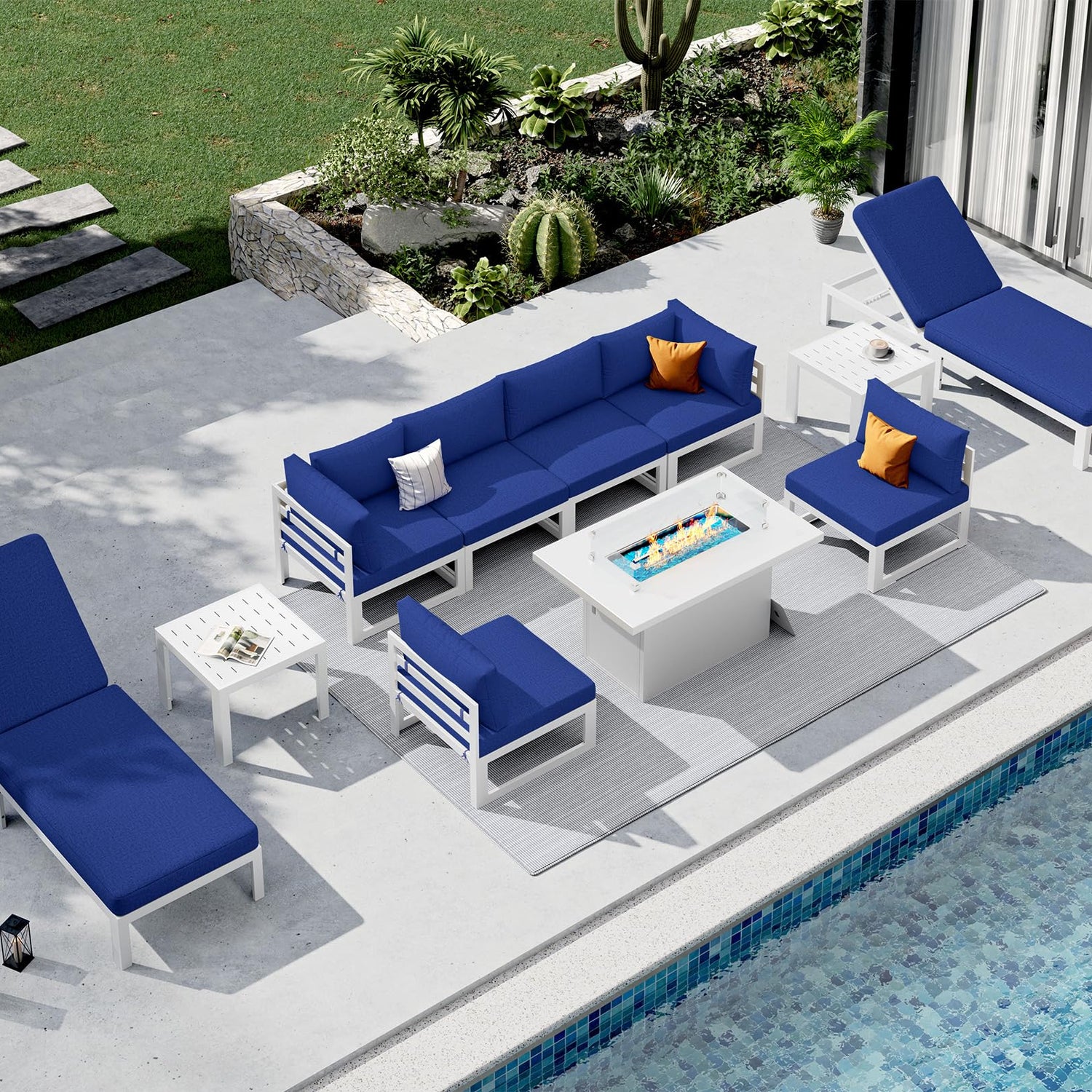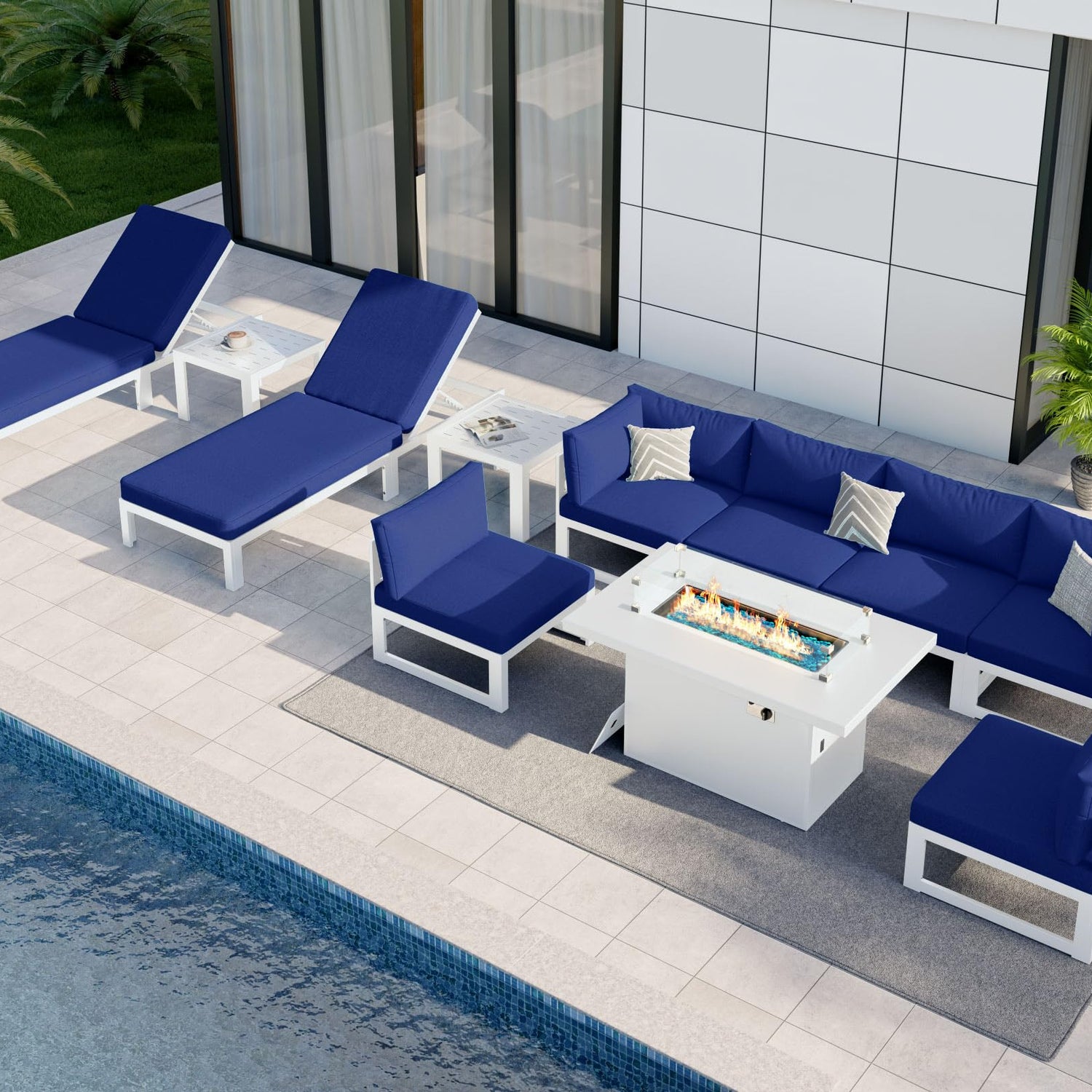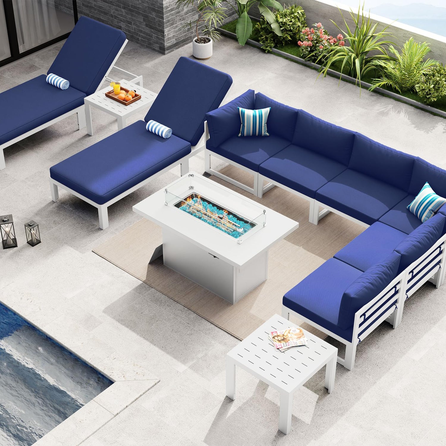NICESOUL 11 Piece Oversized Luxury Aluminum Outdoor Sectional Sofa with Lounge, Weather Resistant Modular Patio Furniture Set, 500 lbs Heavy Duty Conversation Couch for Poolside Garden, Navy Blue