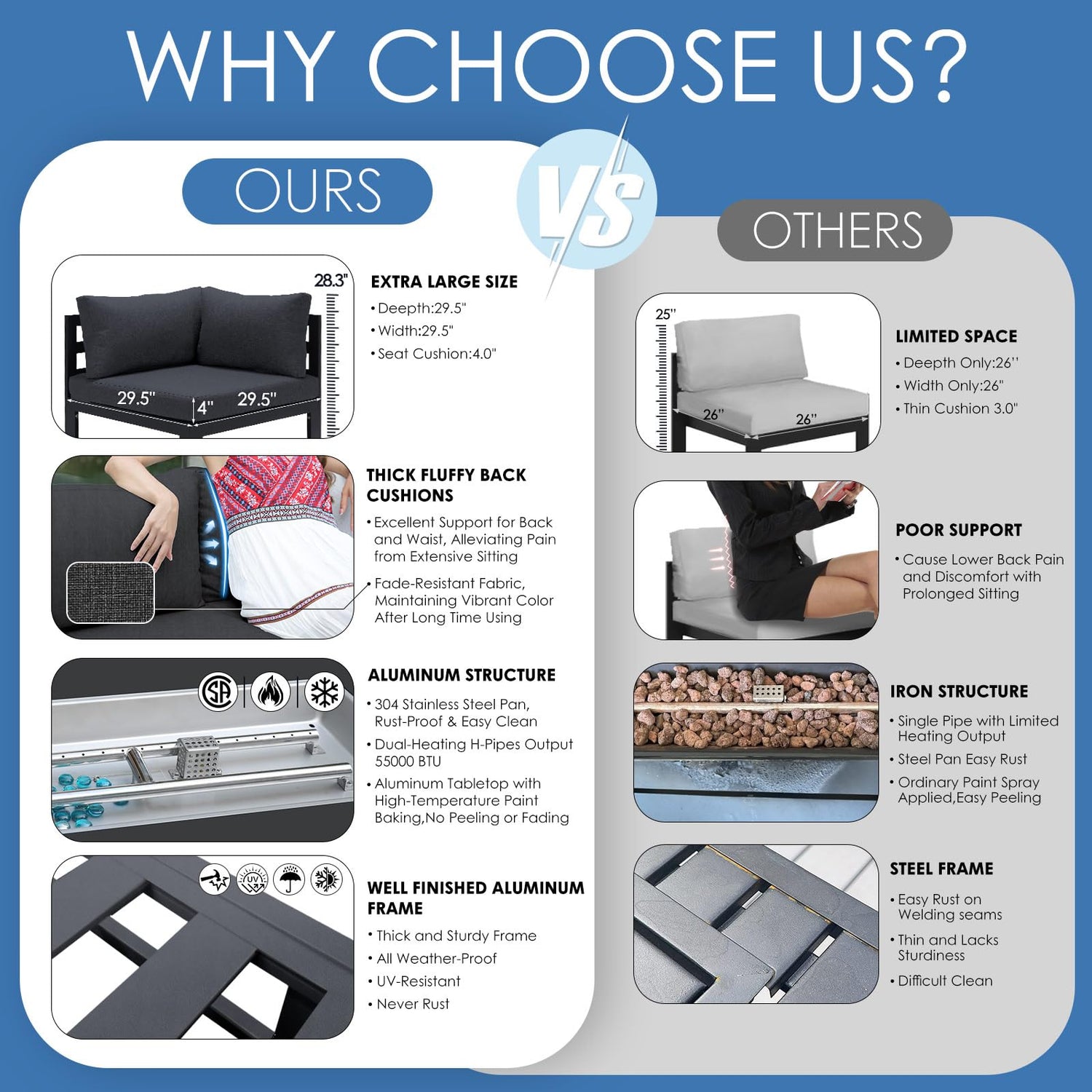 - Easy to Assemble & Effective Support: Our outdoor aluminum sofa is easy to assemble, with each seat typically taking just 15-20 minutes; To ensure a smooth assembly process, we provide a comprehensive installation manual, helpful video guides, and all necessary accessories; Plus, the whole set is under a one-year manufacturer's warranty, and don't worry, we are dedicated to providing exceptional professional customer support with timely assistance if any questions or assistance needed