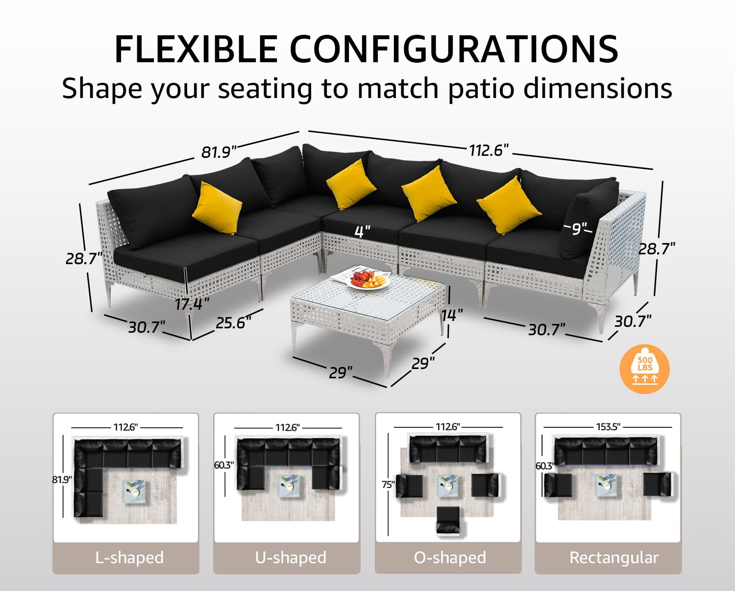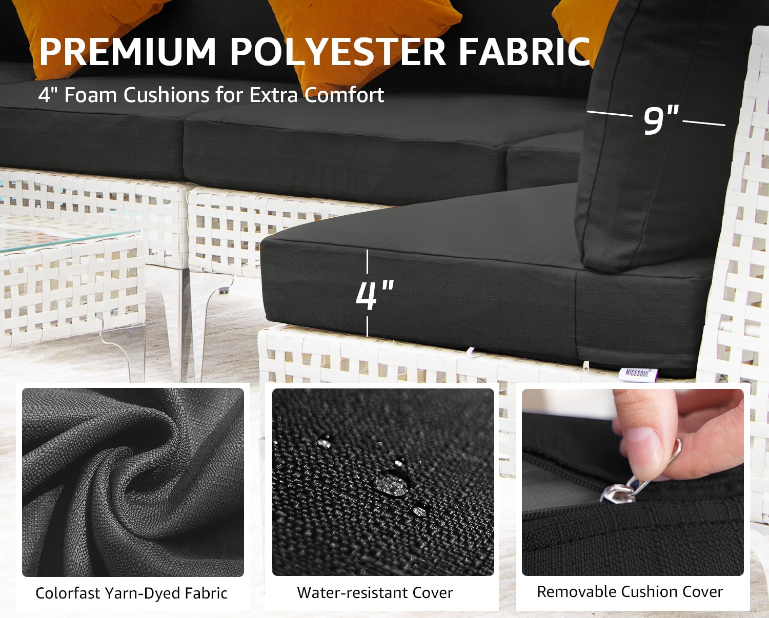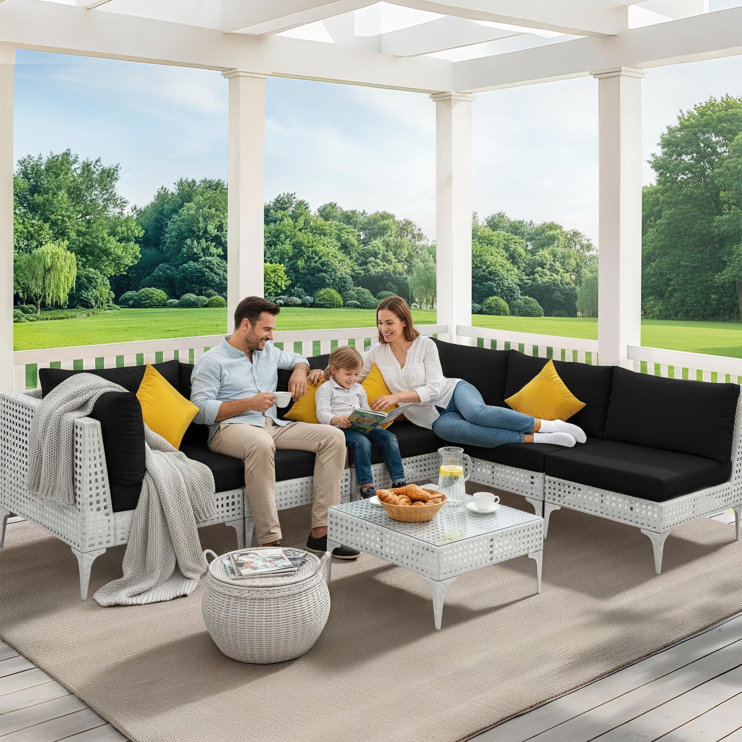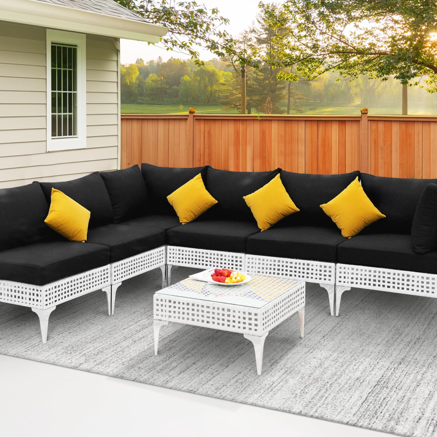 NICESOUL 7 Piece 28.7" High Back Patio Furniture Set, White PE Wicker Outdoor Conversation Sectional Sofa, Comfortable Deep Seat Modular Outdoor Patio Set for Backyard Porch Garden Deck, Black