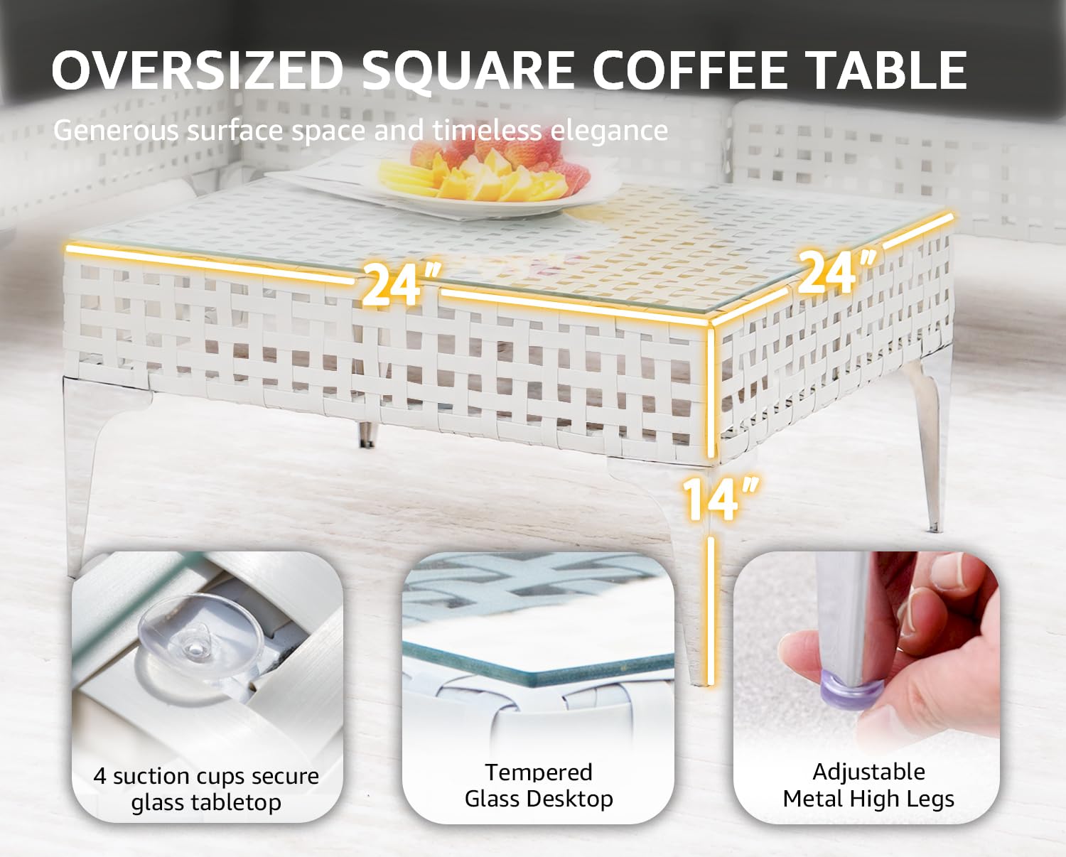 - Modular Assembly Made Easy: Featuring pre-installed components and minimal part counts, all seven pieces can be assembled by two people in approximately 30 minutes; The sofa sections connect via snap-on locking mechanisms, while the tempered glass tabletop secures with suction cups; Non-slip pads reinforce the structure, ensuring a completely secure setup with no loose parts after installation