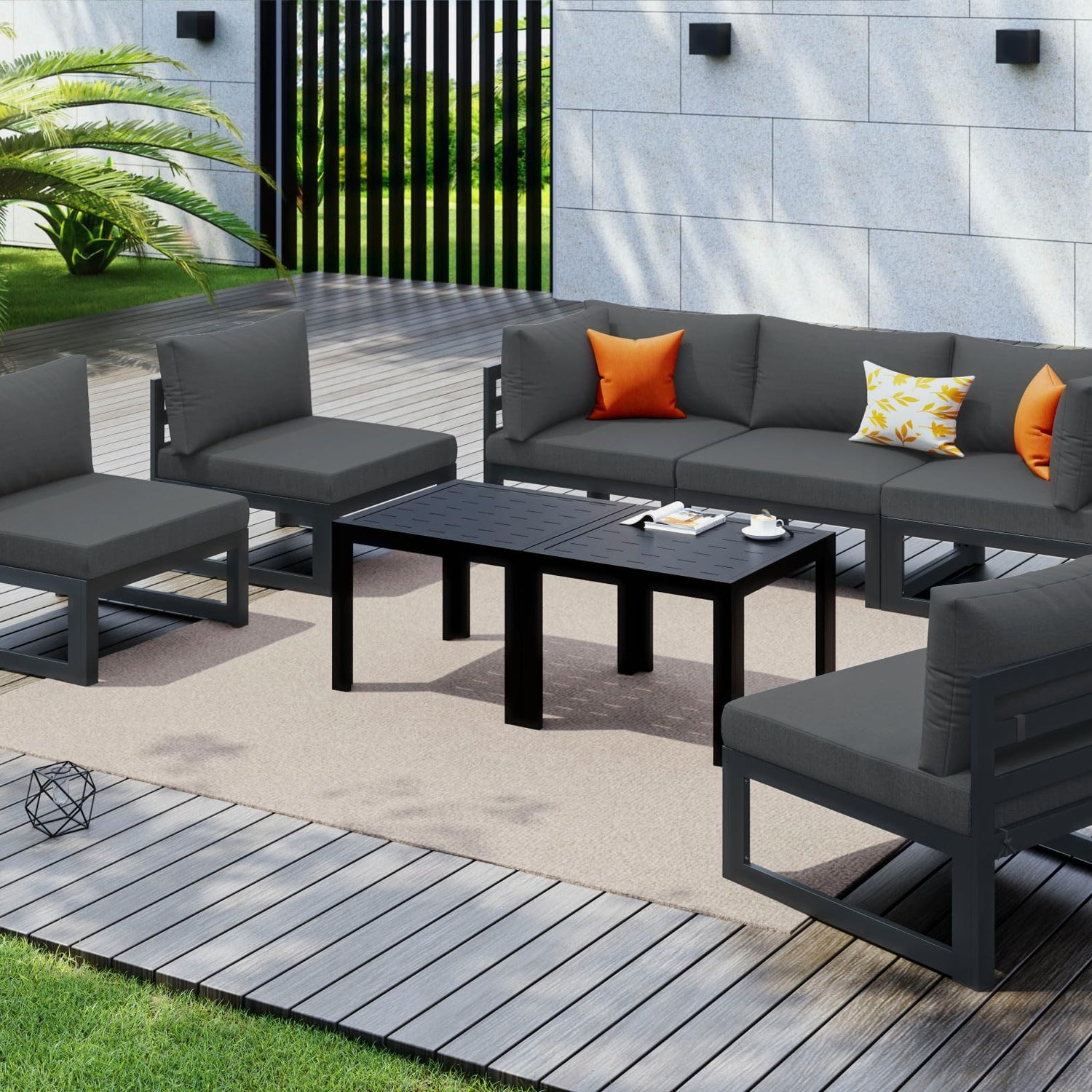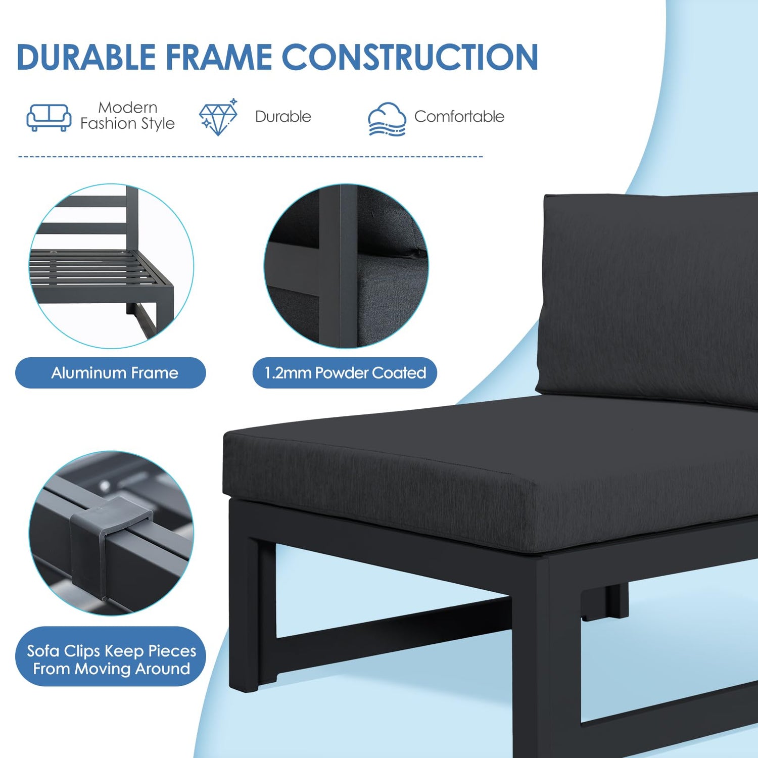- Modular Combination: Easy to Nicesoul's modular AquaShield Aluminum Patio Sofa Series design makes rearranging for any outdoor setting, activity, or occasion easy; Your sectionals can be arranged and rearranged for an unlimited number and color of configurations