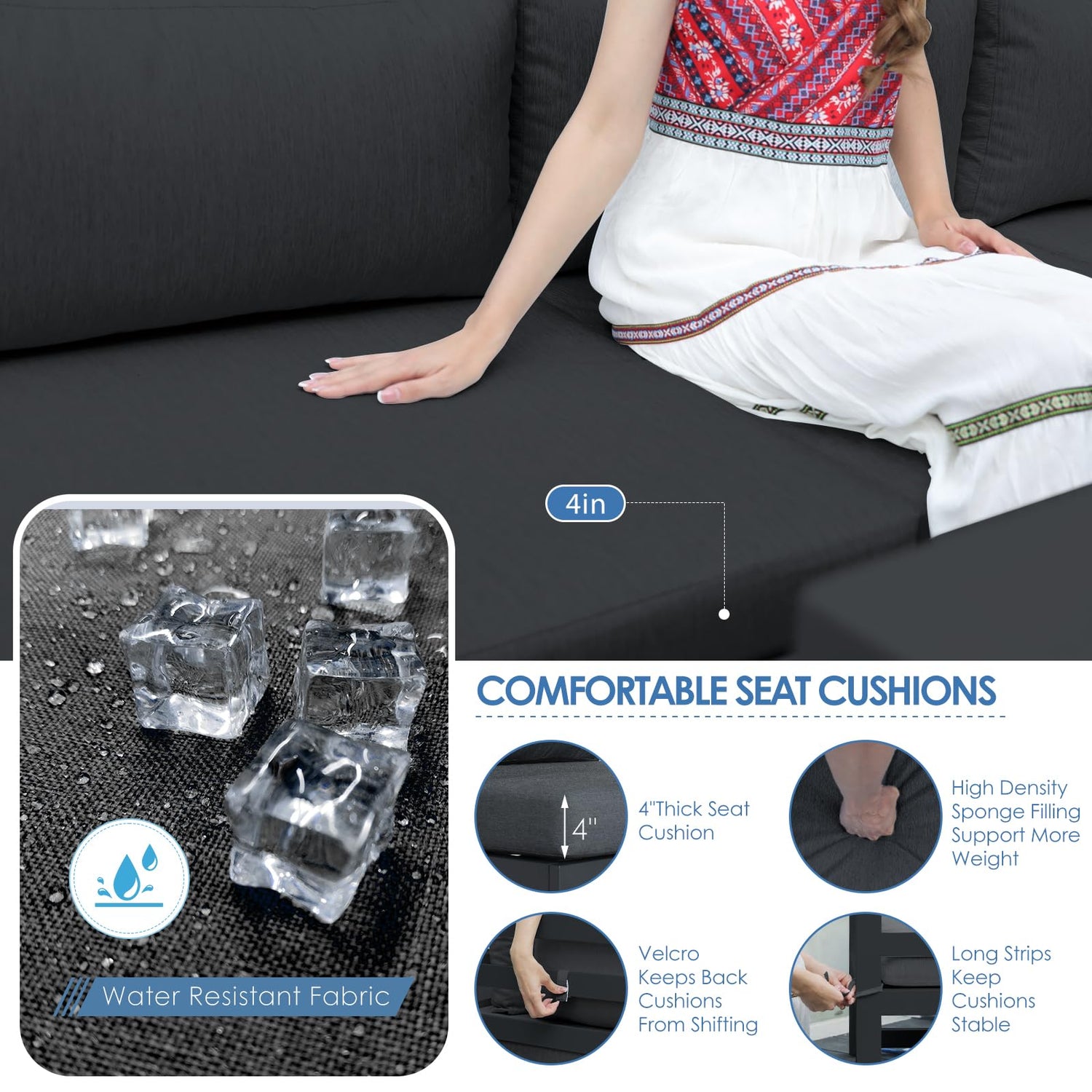 - Extra Wide & Deep Seating: Our sofa seats are 29 inches in width and depth, fairly large seating to ensure a comfortable lounging experience; The three-layer memory foam cushions, with a thickness of 4.1 inches, are hand-sewn and offer luxurious comfort, they won't collapse after a long time, so there is no need to worry about them getting thinner; For easy maintenance, these cushion covers are removable and machine washable