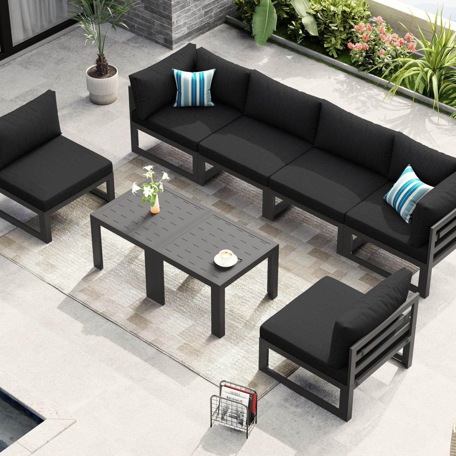 NICESOUL 8 Piece Modern Aluminum Patio Furniture Set Deep Seated, Extra Wide Modular Outdoor Sectional for 6 People, 500 lbs Heavy Duty L-Shaped Oversized Sofa Couch for Outside Backyard, Ember Black
